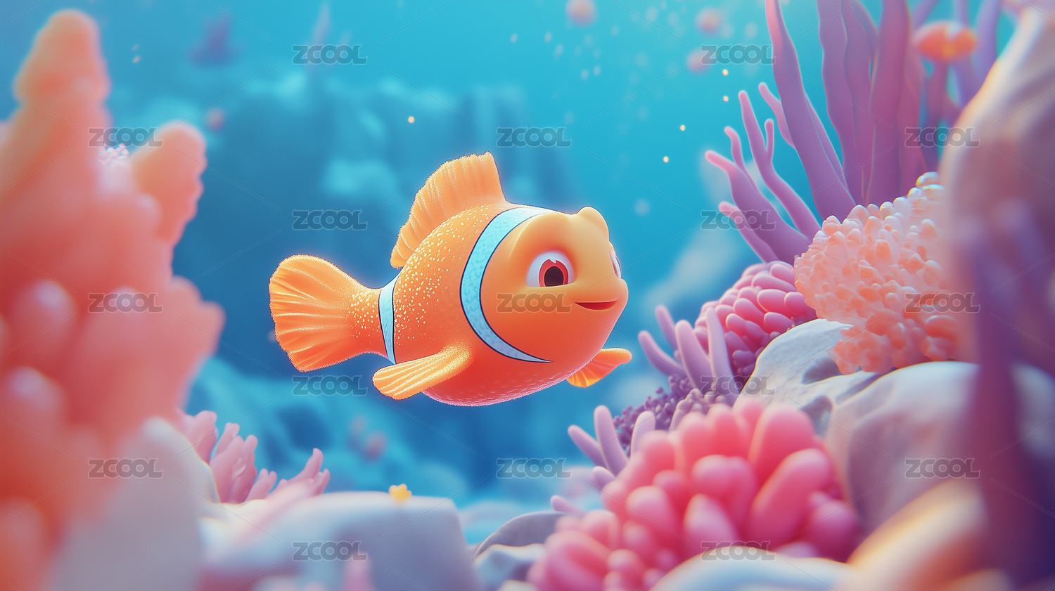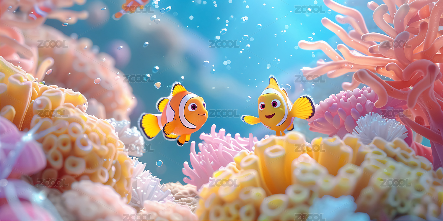 3D卡通梦幻珊瑚礁小丑鱼