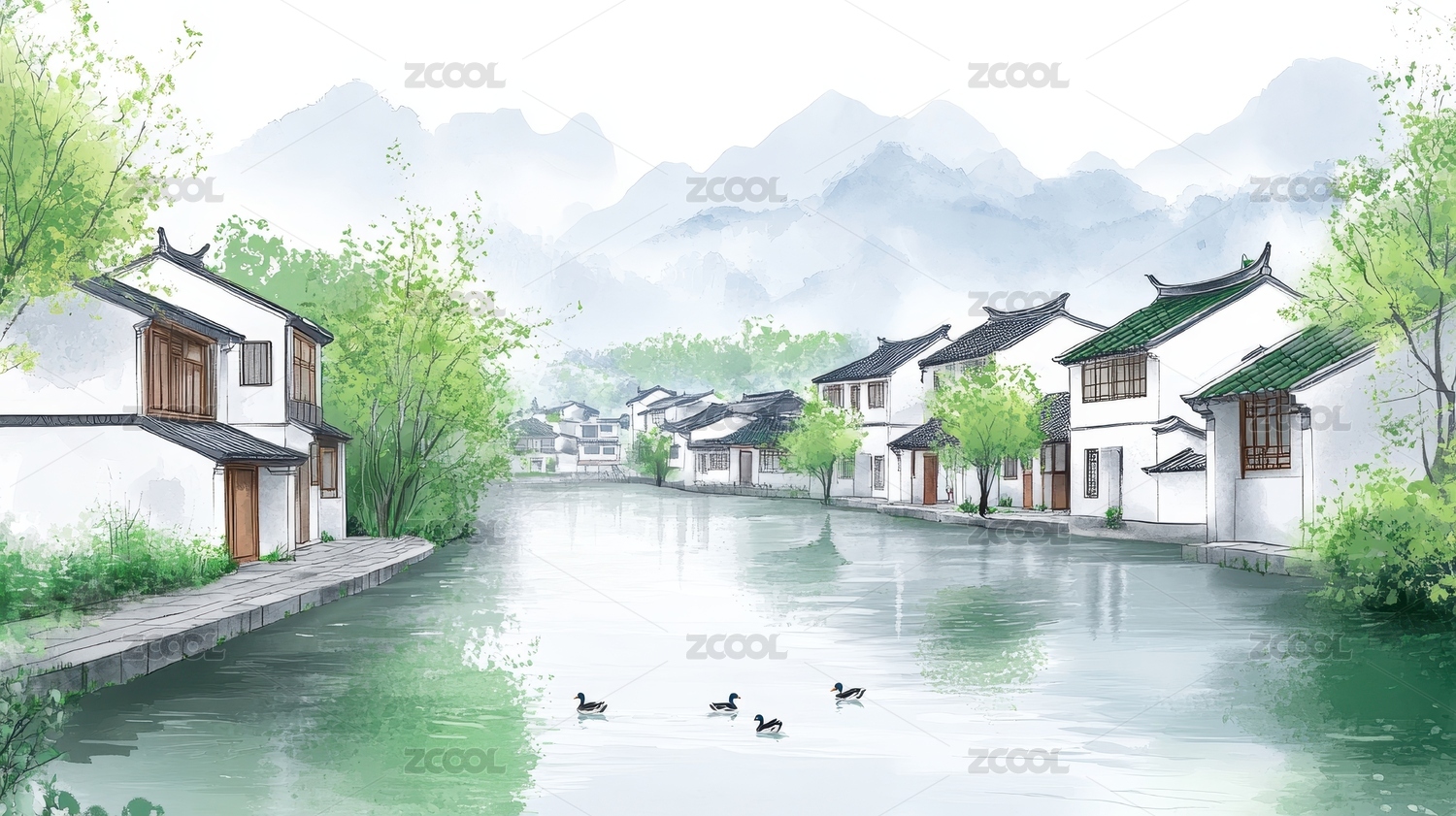 宁静,淡雅,意境,朦胧,江南水乡,水墨画,水景,诗意,文化,建筑