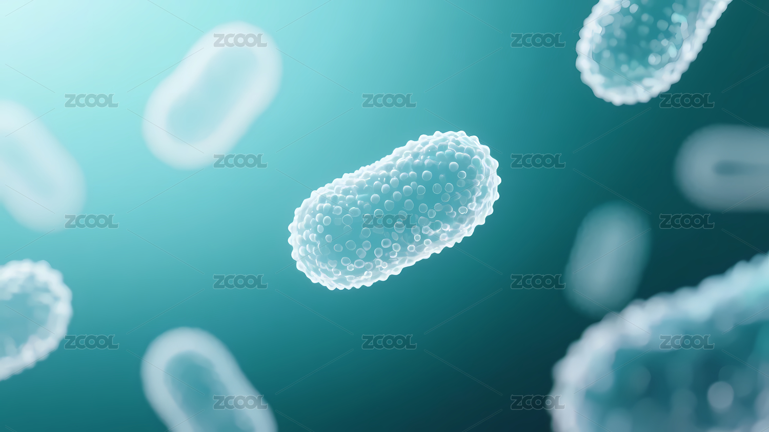 蓝色背景下表面细节丰富的细菌病毒,三维渲染