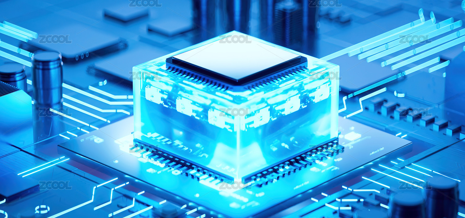 蓝绿芯片配模糊电路背景