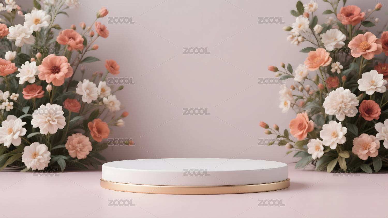 粉色圆形讲台花饰