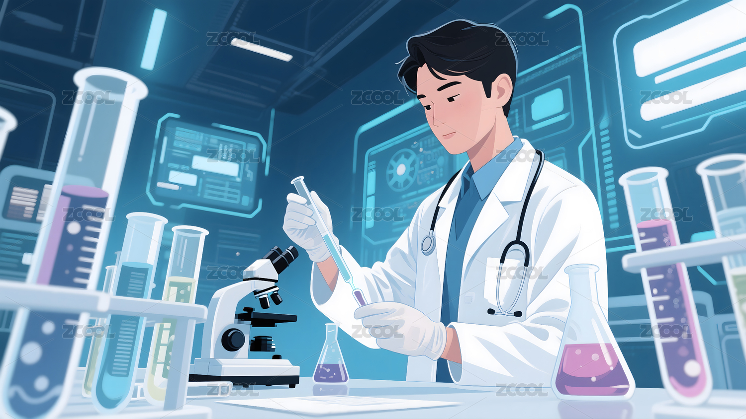 图表,科技,医生,卡通,健康,医药研究,科学研究,医学未来,生物,显微镜