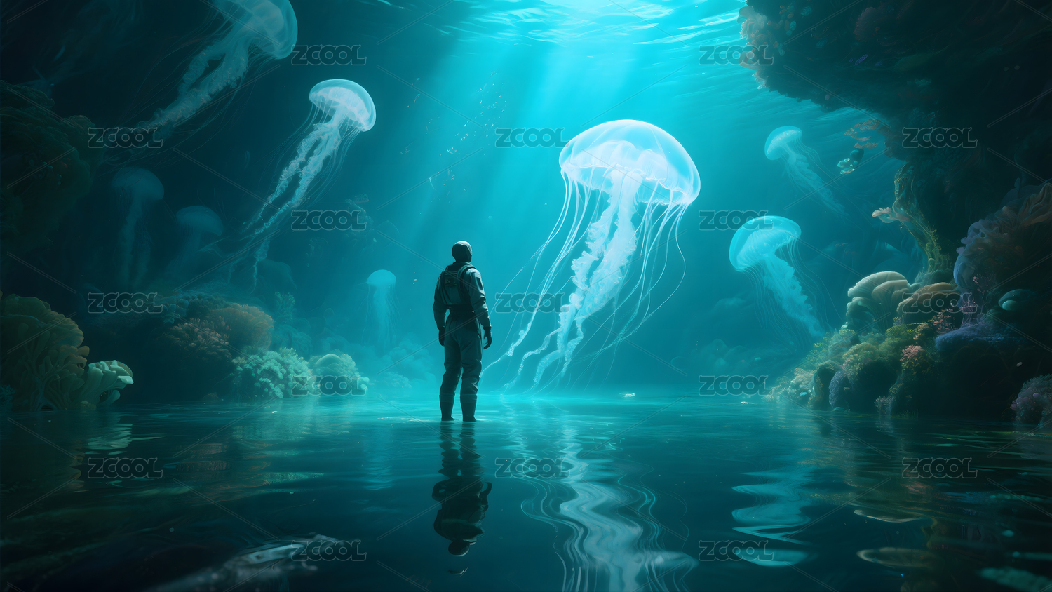 礁石,生态系统,水母,深海,水下世界,奇幻,神秘,海底,龙,生物