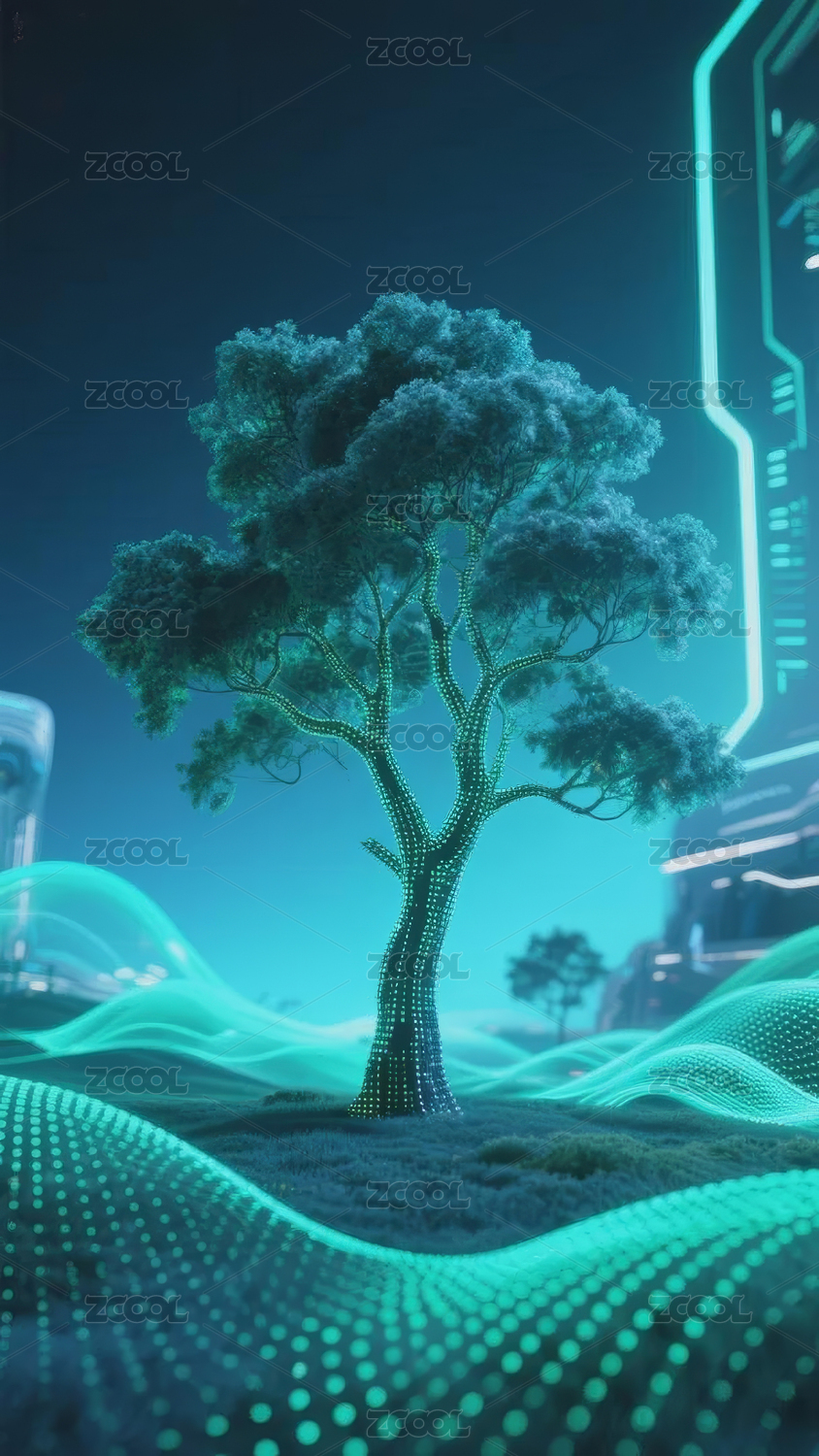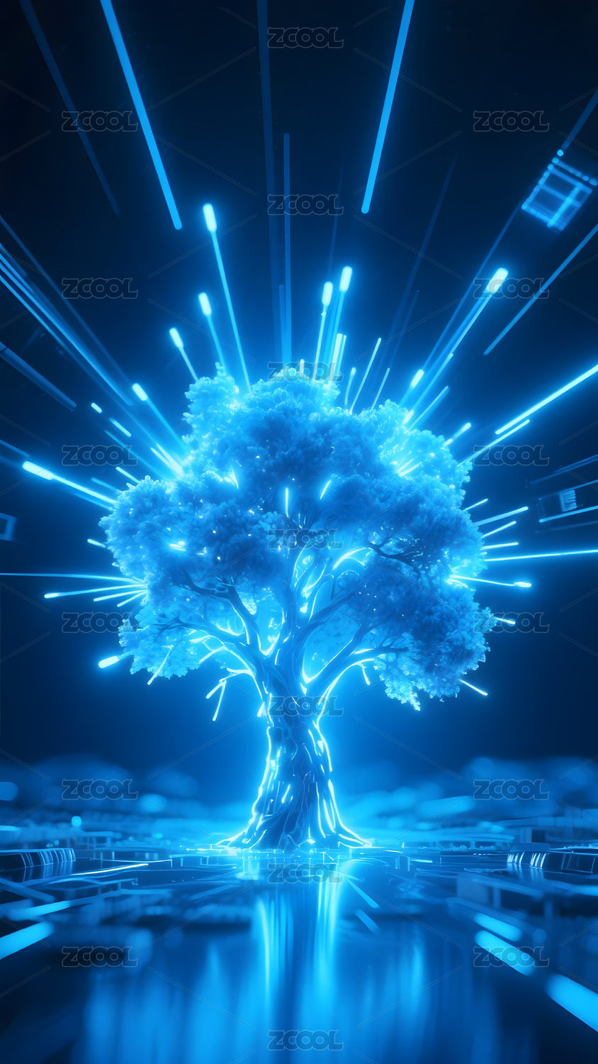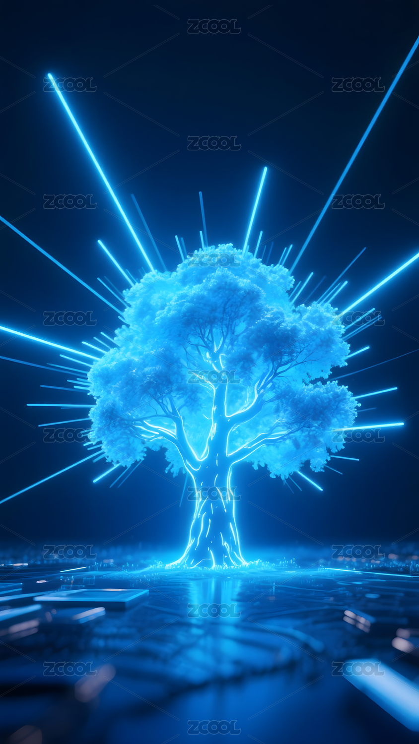 夜晚,蓝色,艺术,视觉,树,设计,背景,科技,未来,效果