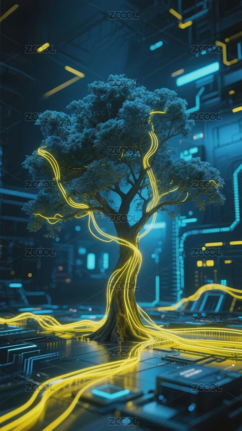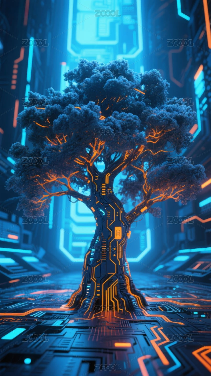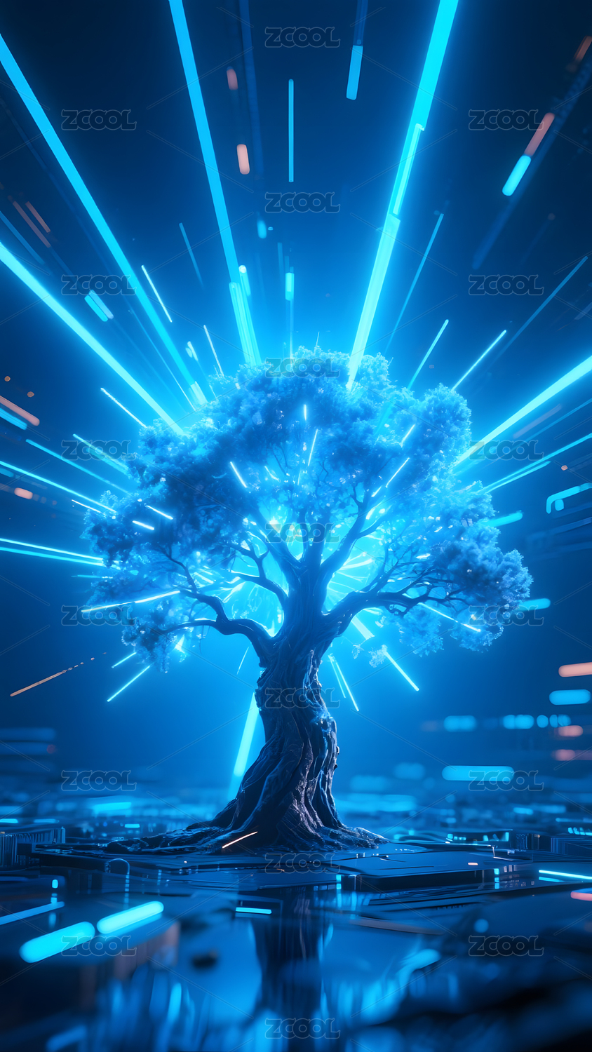 夜晚,蓝色,艺术,视觉,树,设计,背景,科技,未来,效果