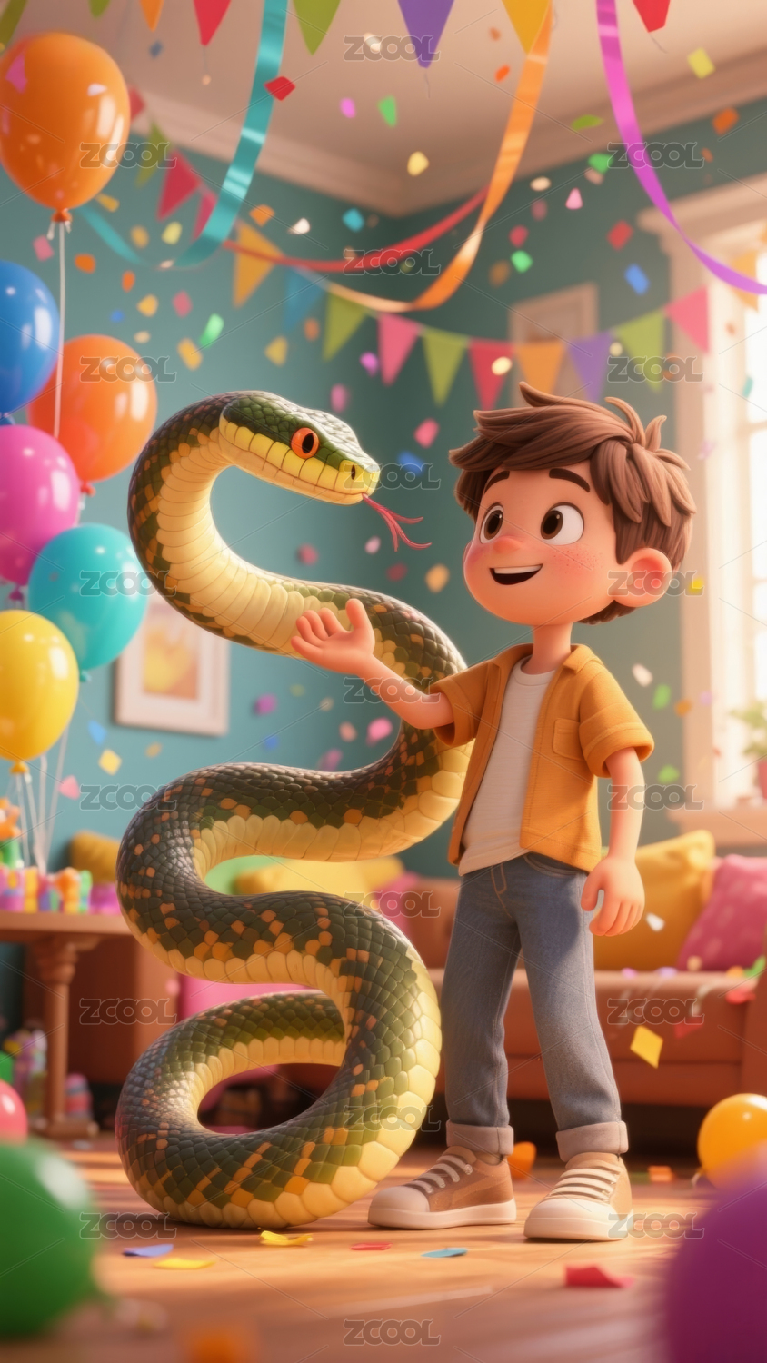 可爱的3D癸巳年蛇年小蛇卡通插画