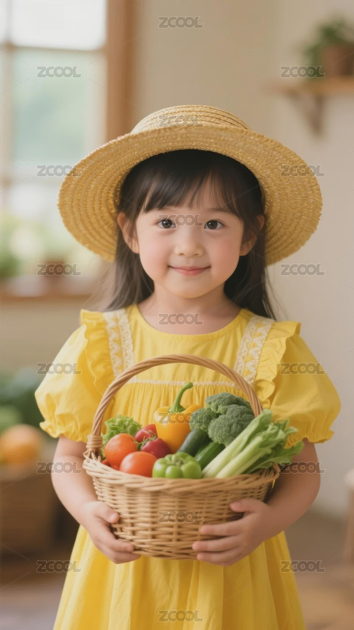 蔬菜,胡萝卜,西红柿,黄瓜,绿色,健康,快乐,小女孩,黄色,微笑