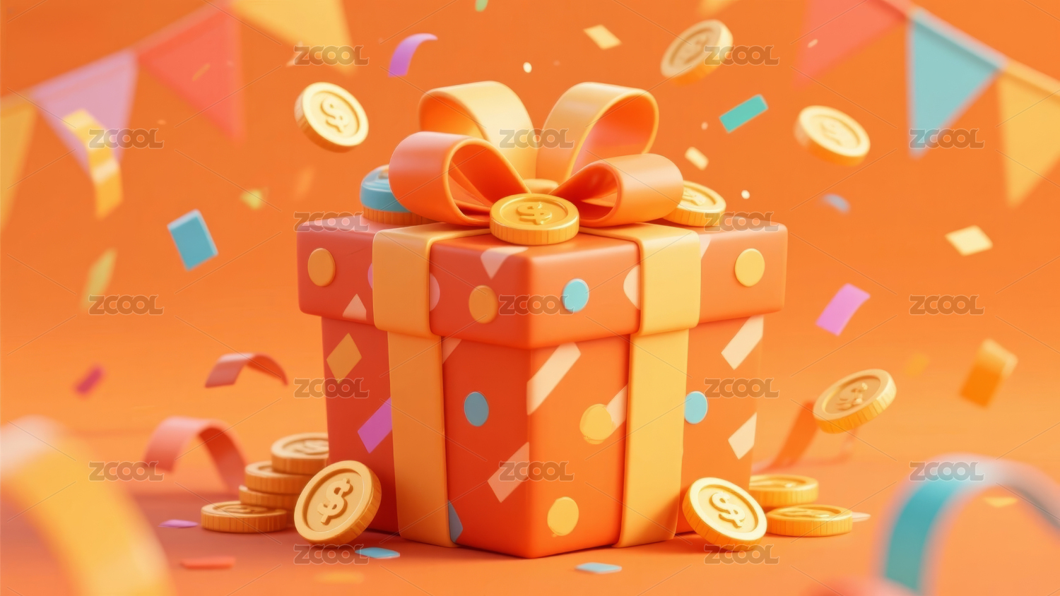 清新可爱有丝带的彩色礼盒3D卡通立体插画