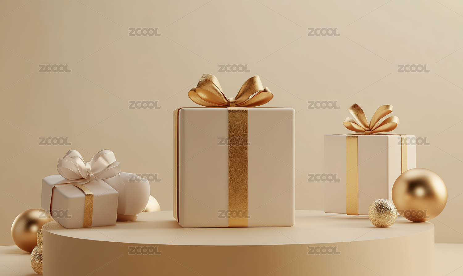 金色丝带白色礼物盒