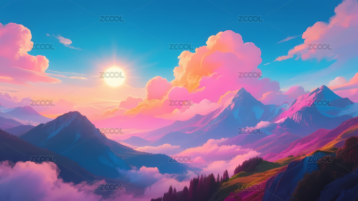 自然, 美丽, 天空, 风景, 宁静, 光线,山峰, 云海, 日出, 山脉