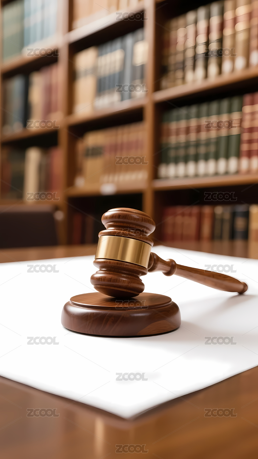 木制法槌与书架背景
