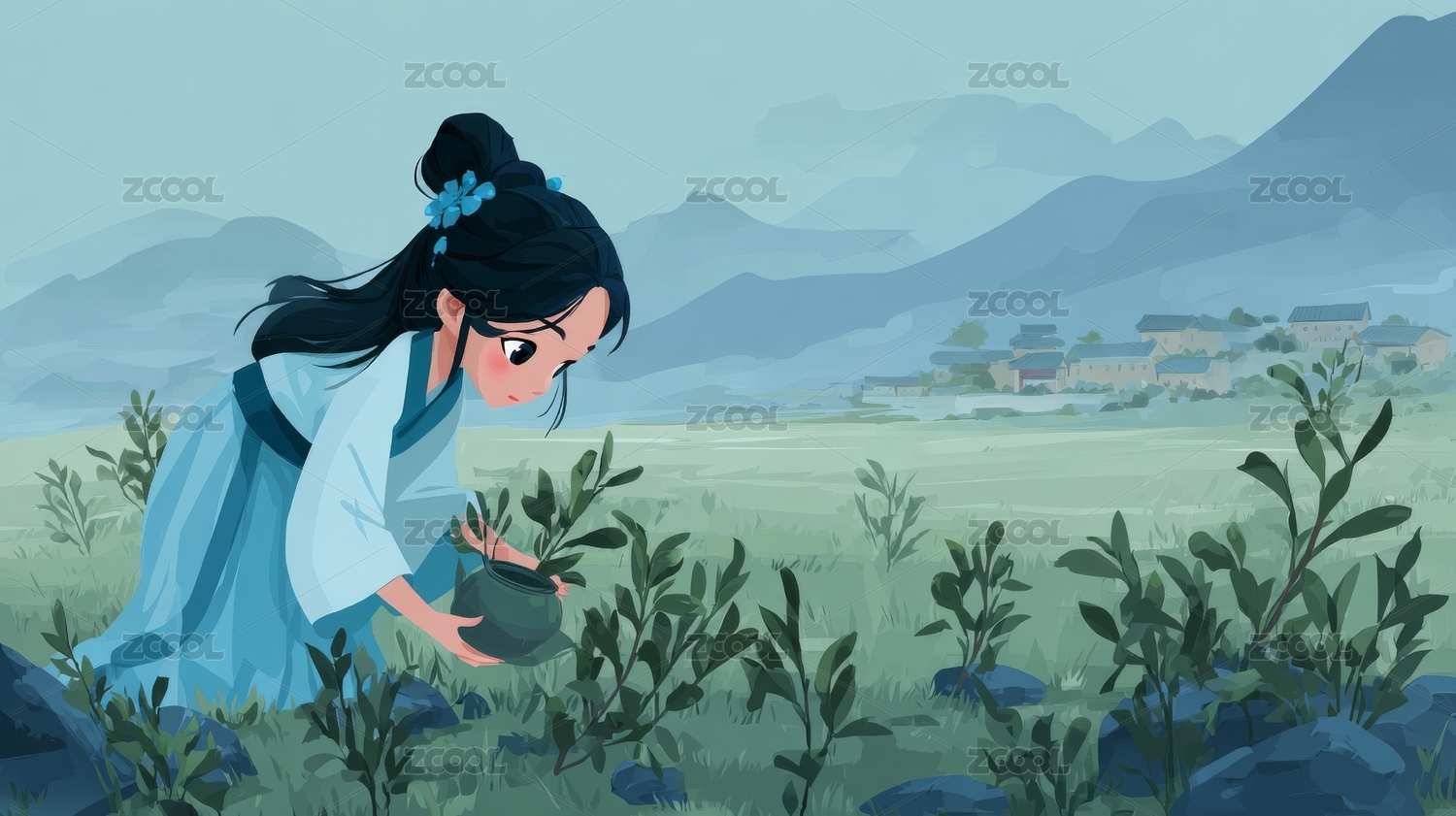 二十四节气谷雨古人夏天乘凉休闲下棋的老人