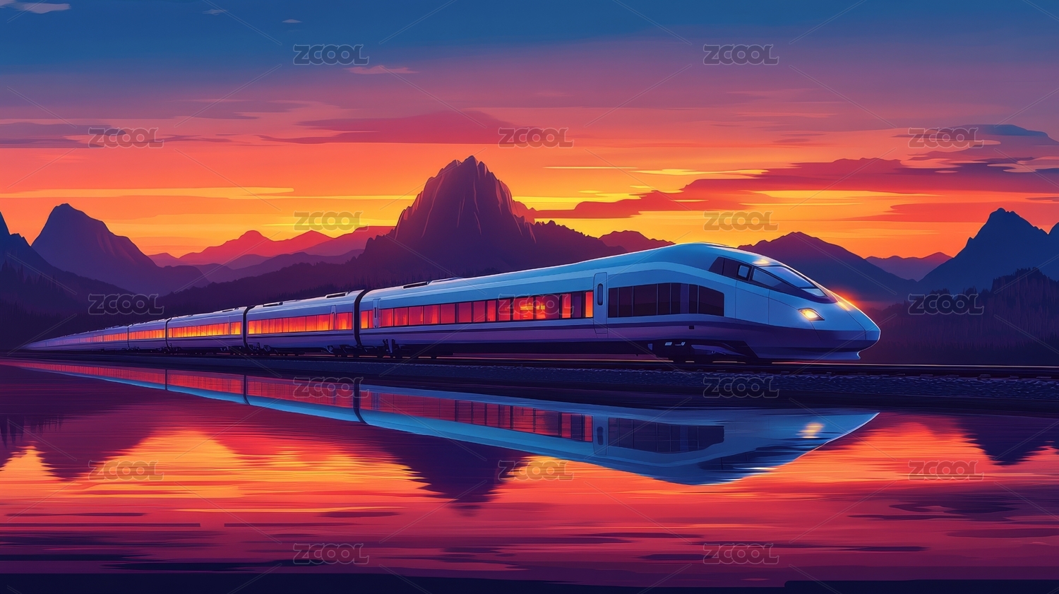科技, 现代, 设计, 环境, 未来, 生态, 绿色, 植被, 列车, 桥梁