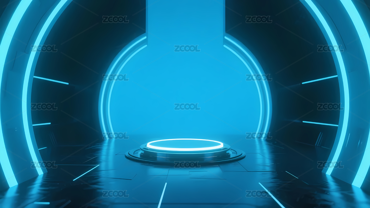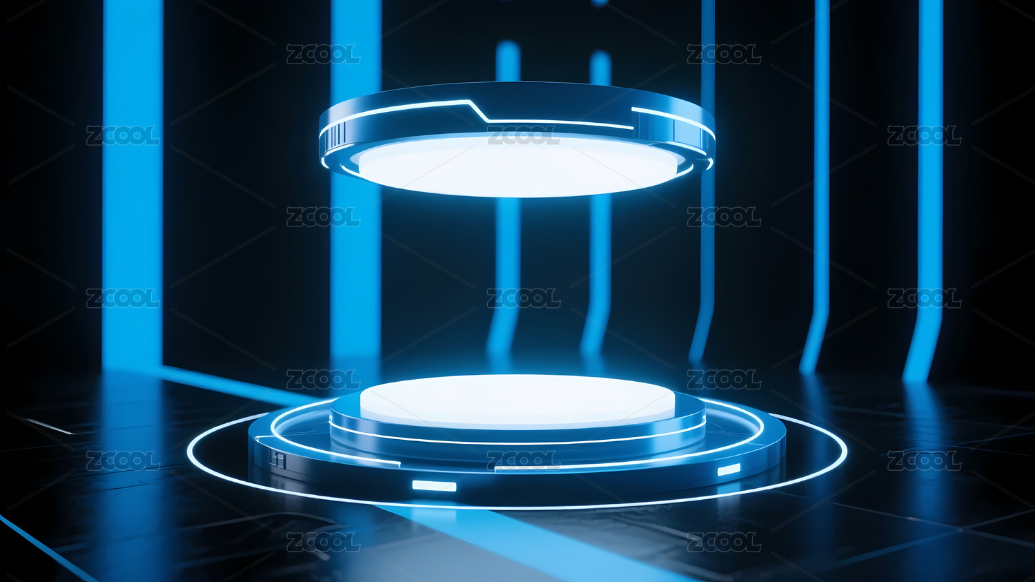蓝色圆形平台与发光环带
