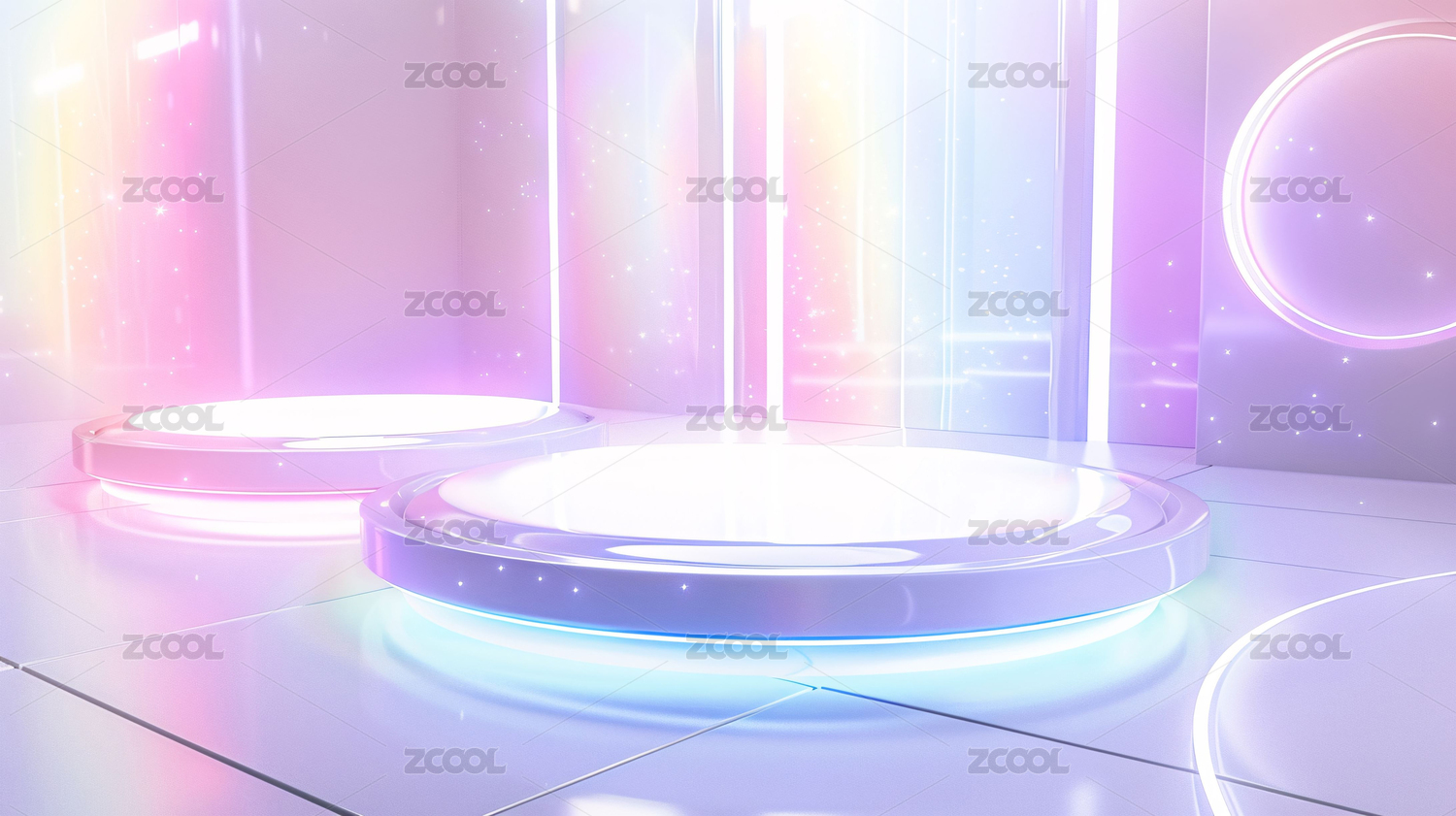 蓝粉圆形平台紫色背景