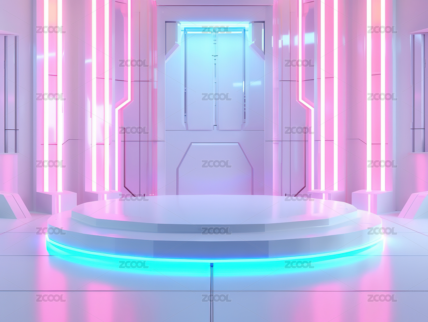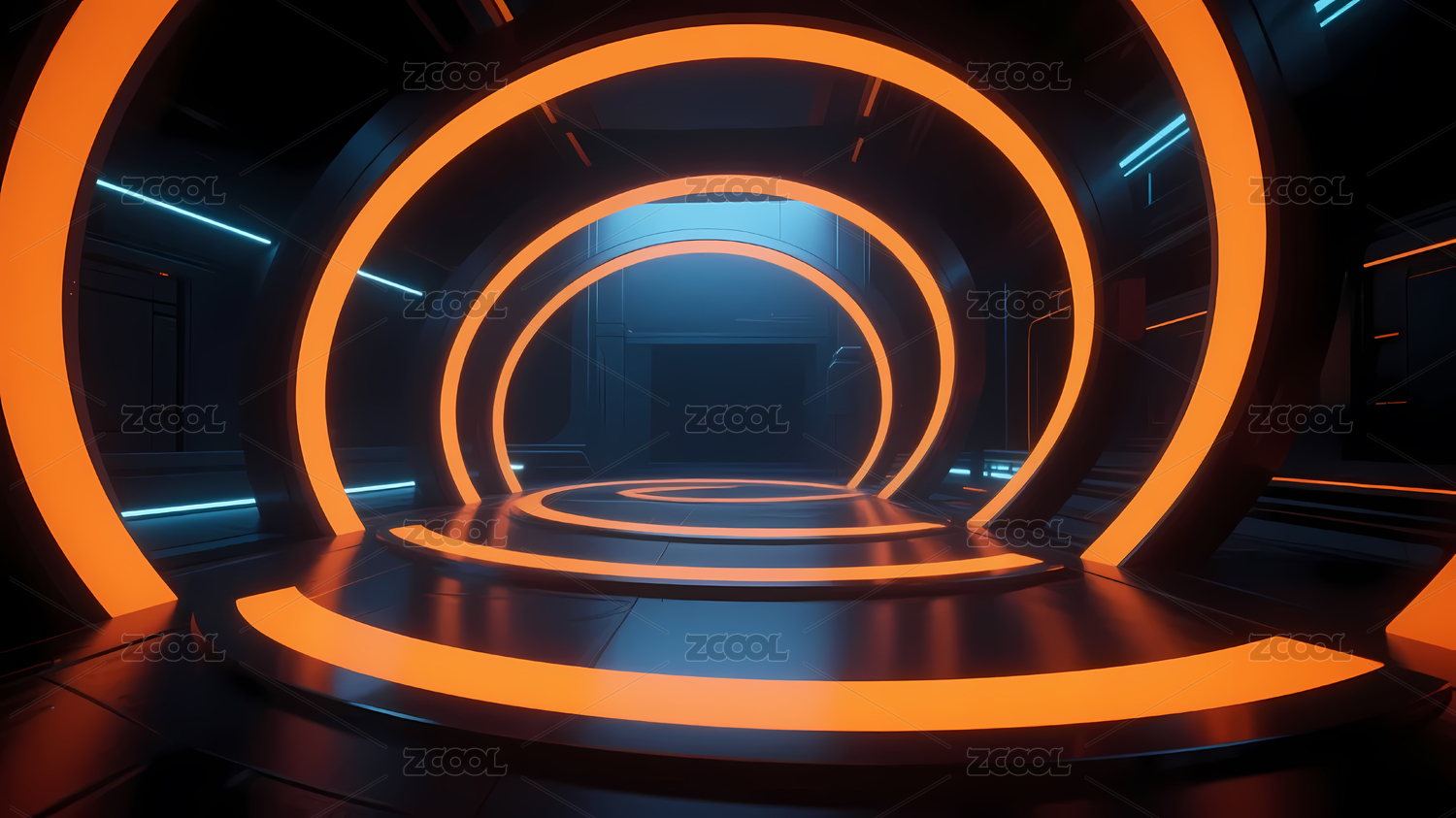 蓝黄霓虹圆形平台环境