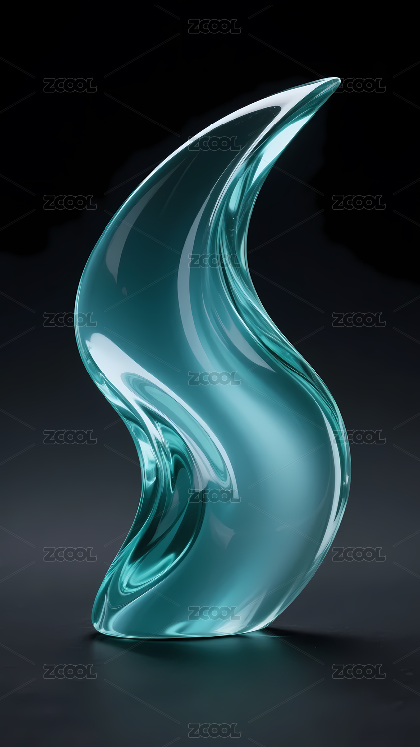 蓝绿色玻璃雕塑艺术品