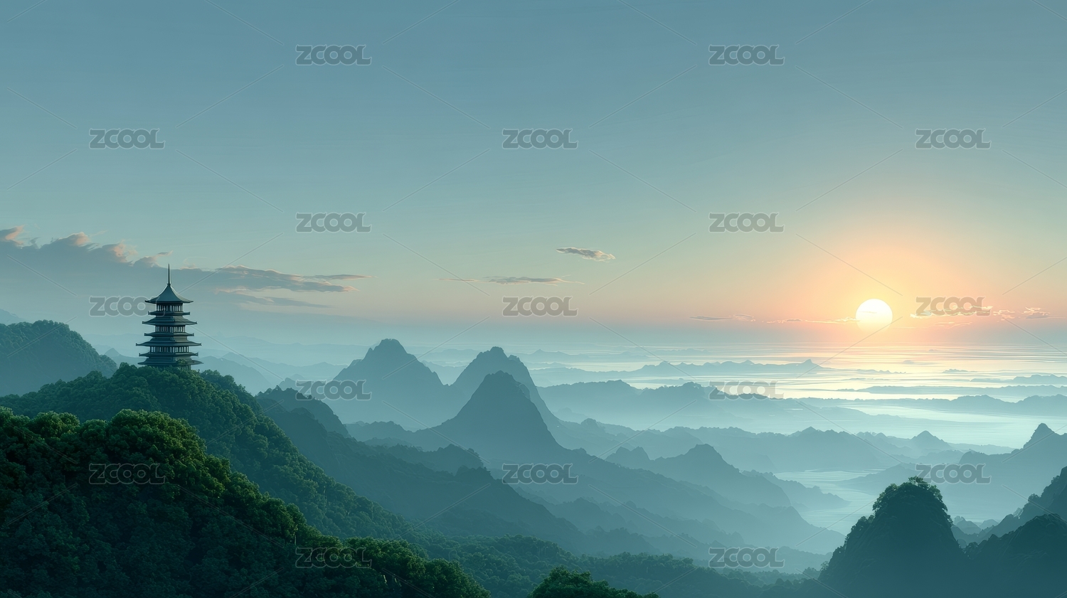 自然, 神秘, 风景, 美丽, 宁静,山间, 古塔, 建筑, 云海, 传统