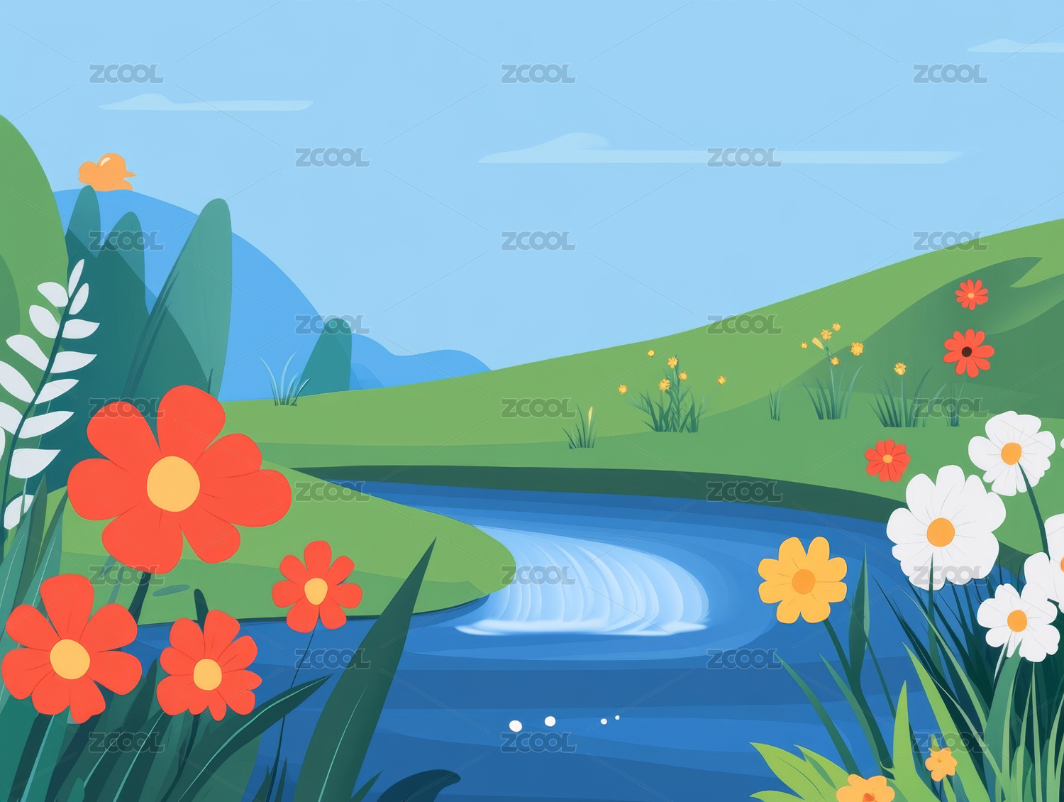立夏节气人物游泳插画夏天河流漂流活动海报