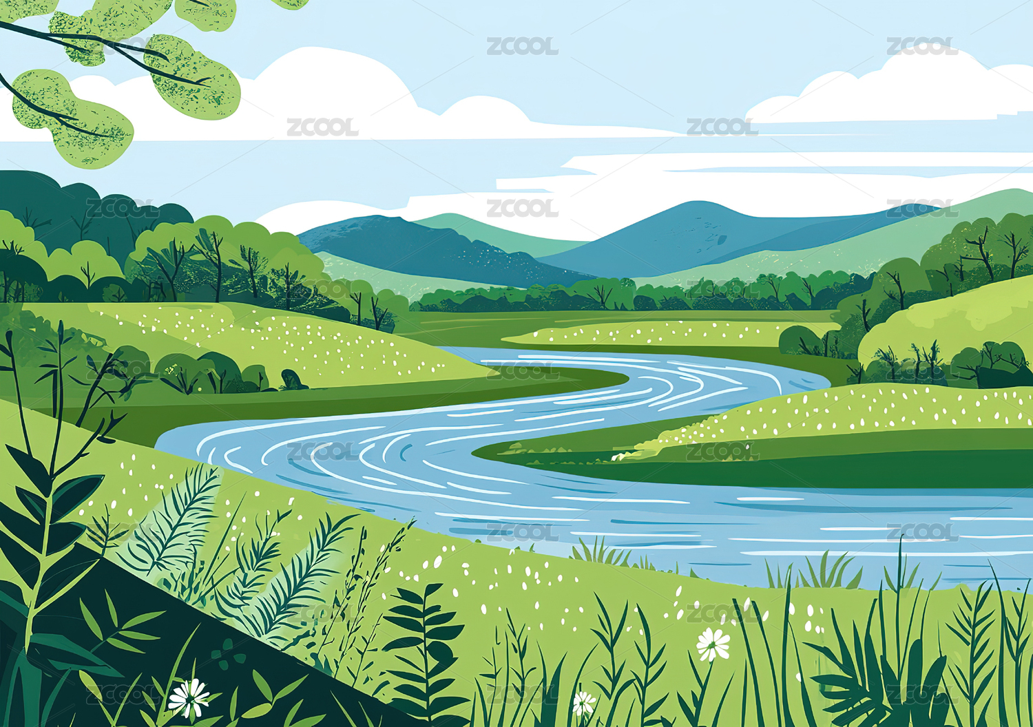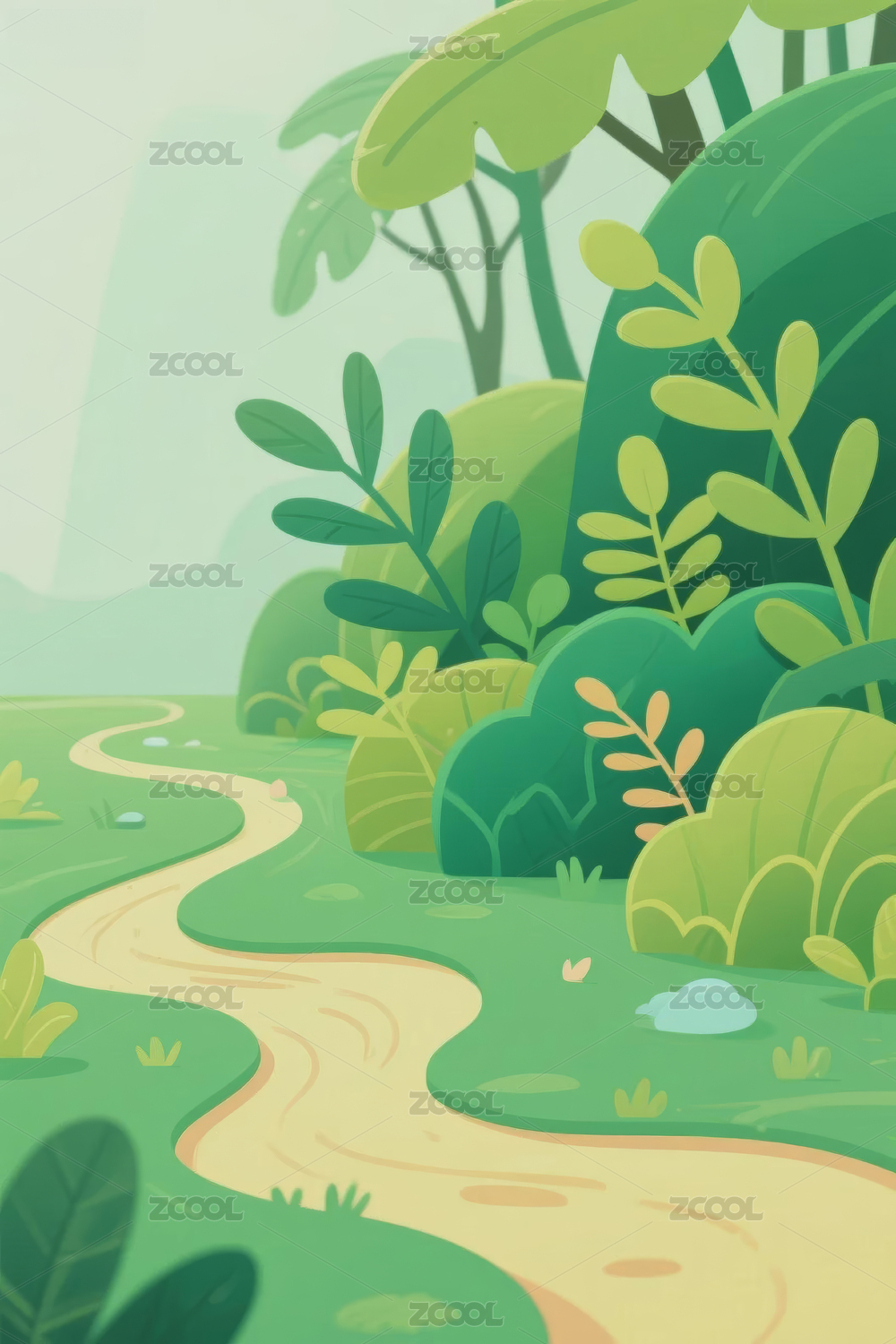 景观, 艺术, 绿色, 叶子, 植物, 自然, 插画, 背景, 色彩, 生动