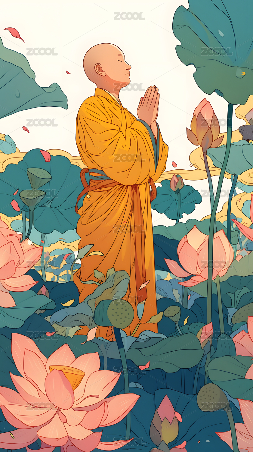 莲花, 池塘, 水, 倒影, 冥想, 和尚, 宁静, 自然, 粉色, 绿色