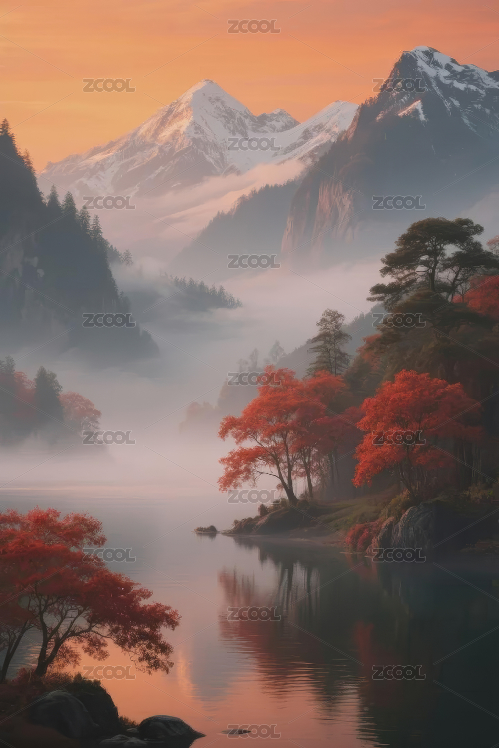 岩石, 自然, 山水, 美丽, 树木, 雾气, 宁静, 静谧, 倒影, 色彩