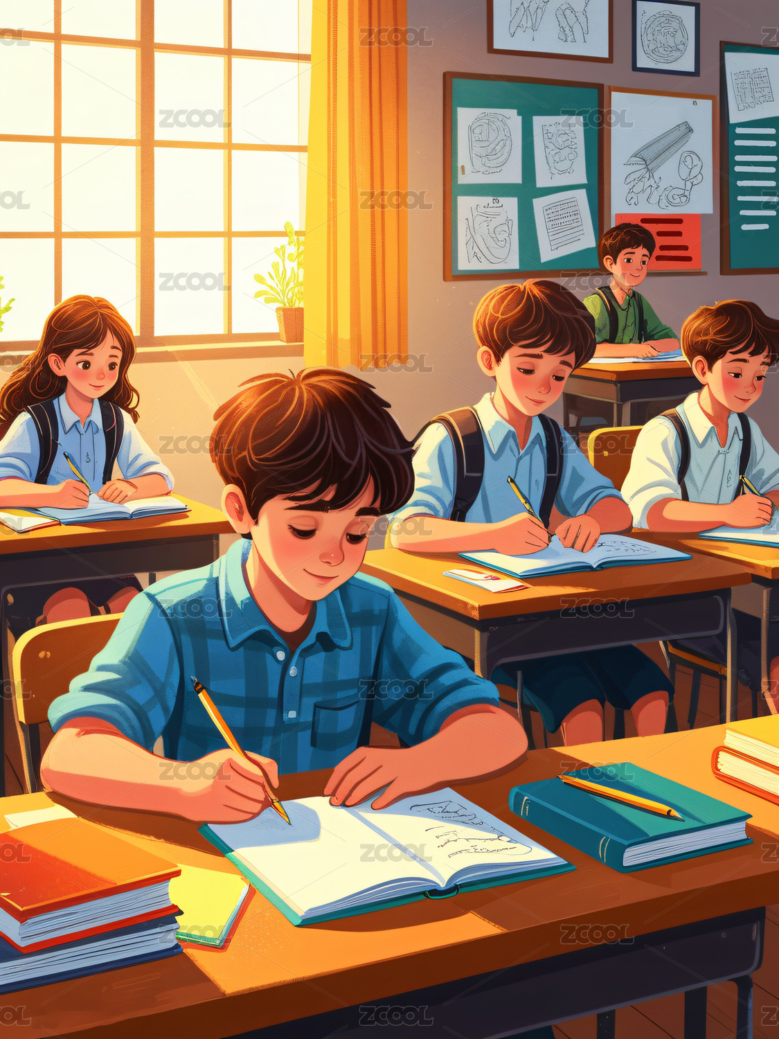 校园教室学生插画