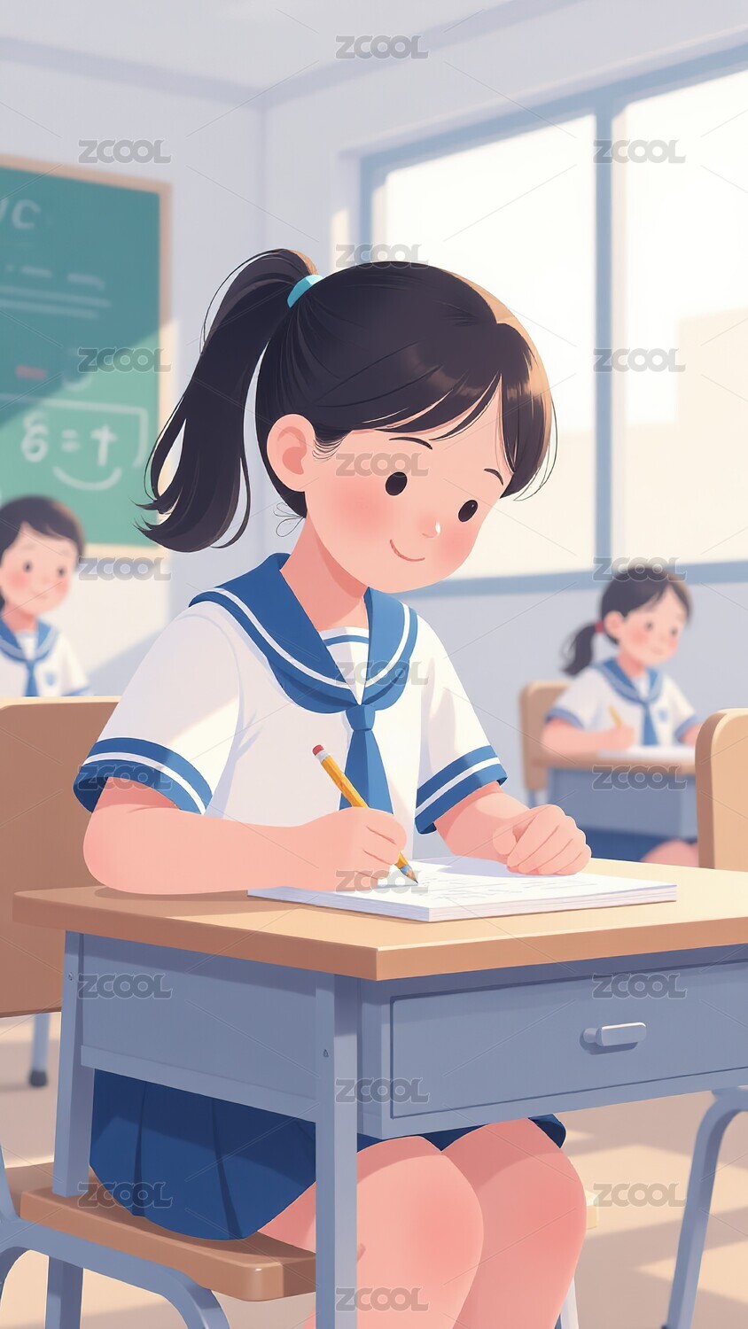 教室里认真学习的女孩
