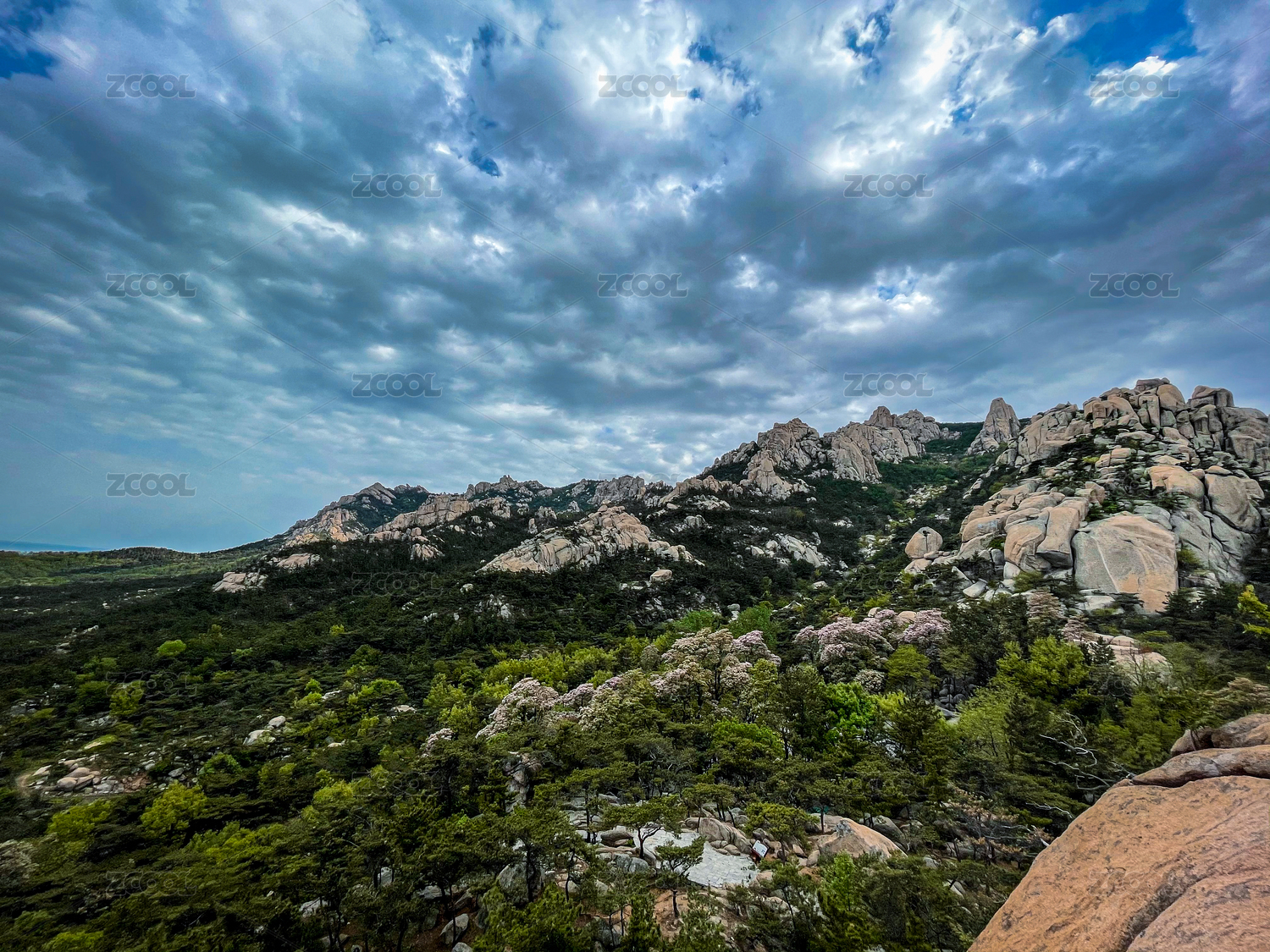 中国山东青岛崂山仰口景区的蓝天白云和山峰