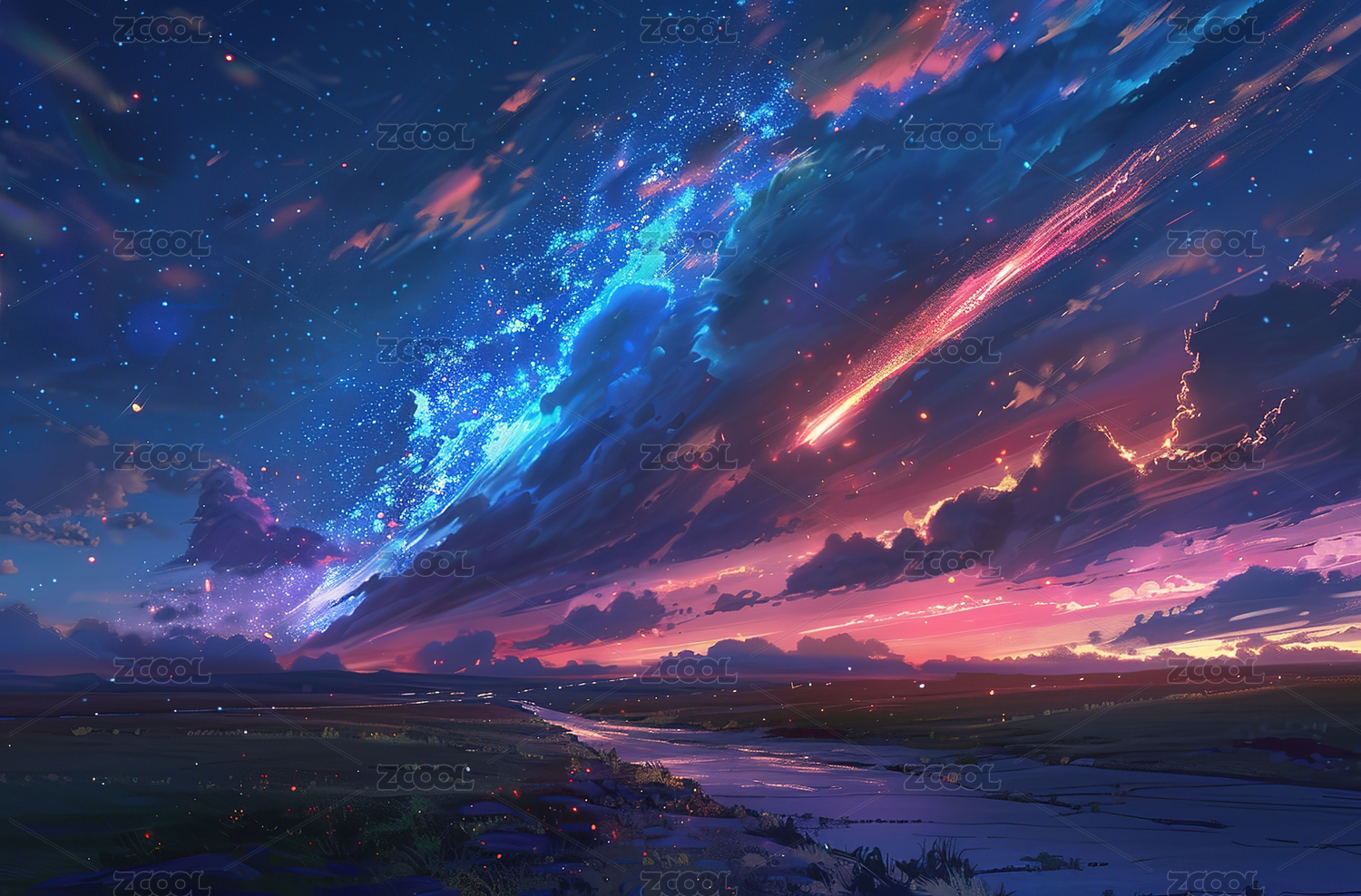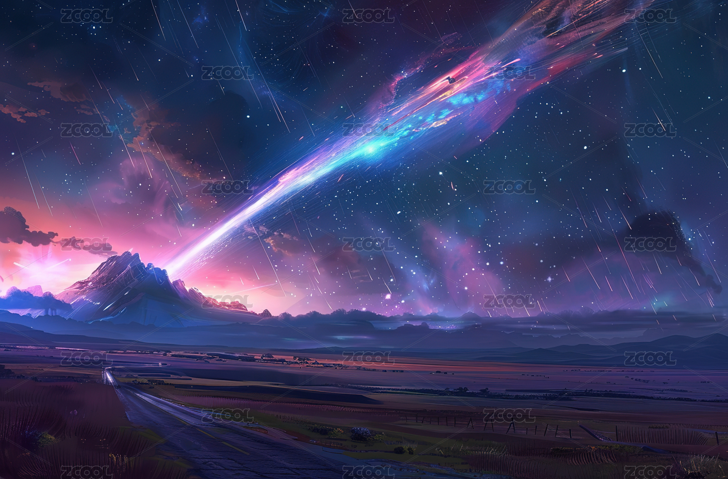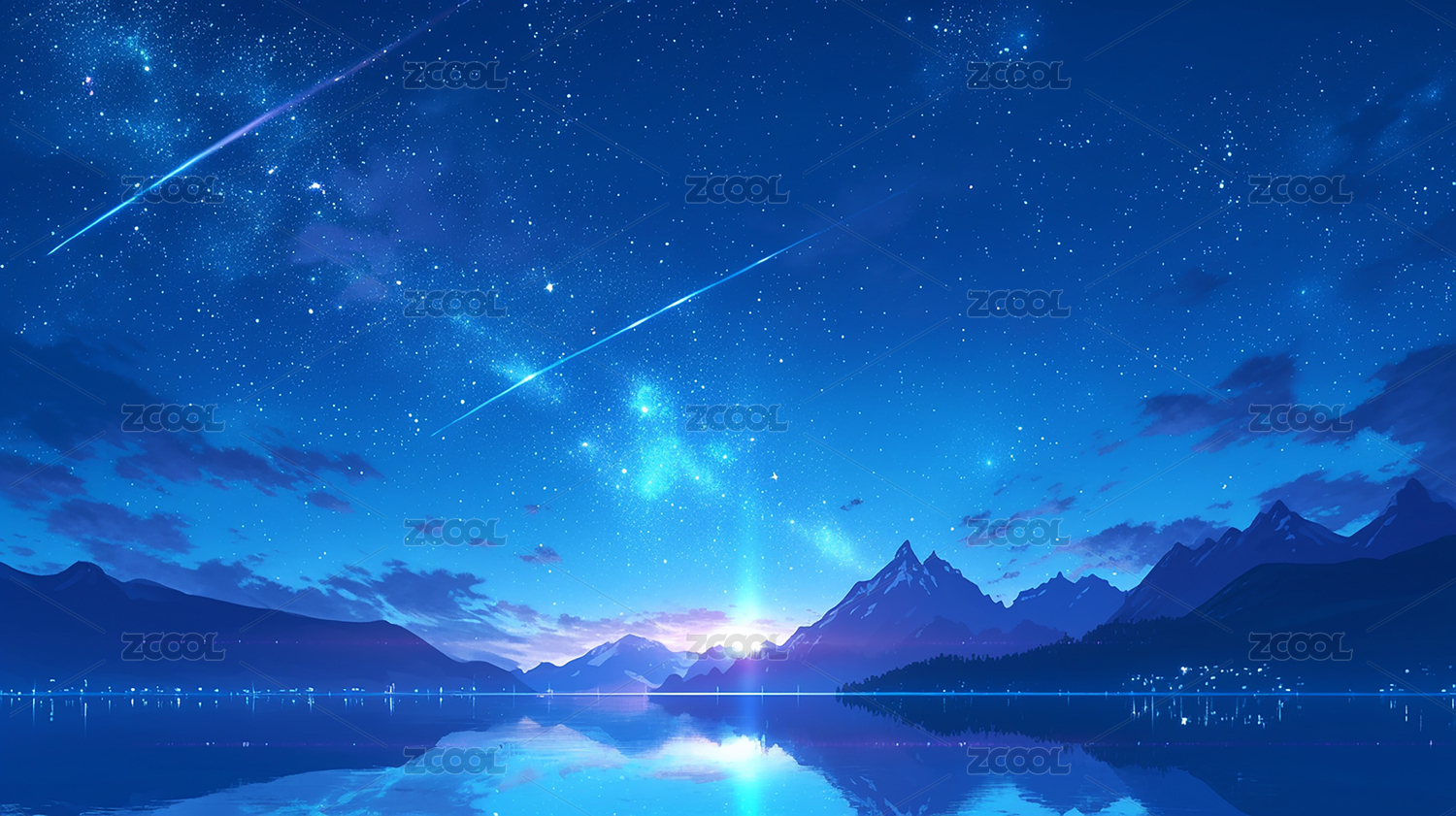 流星划过星空湖畔璀璨星河夜空背景壁纸