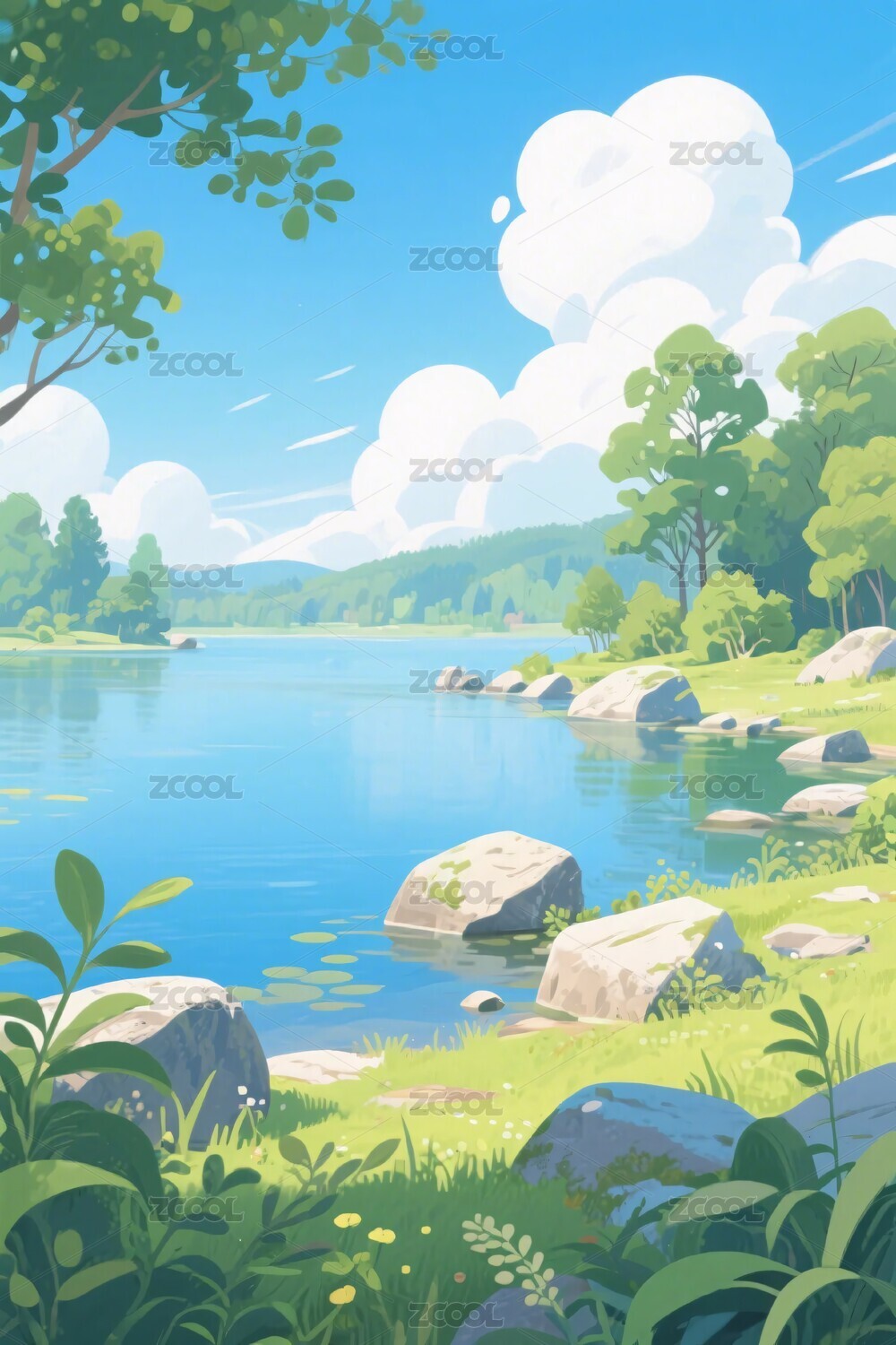 蓝天, 风景, 自然, 绿树, 河流, 宁静, 田园, 生态, 美丽, 环境