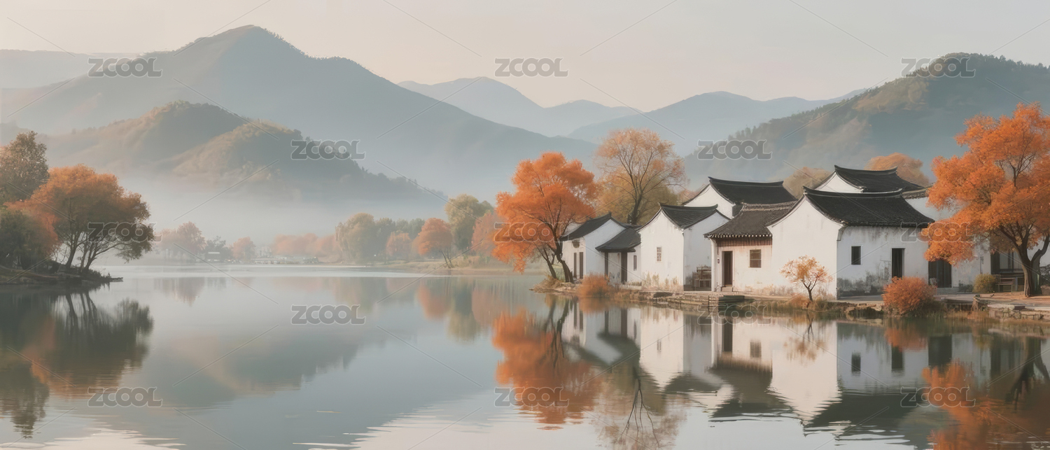 中国浙江杭州富阳孙权故里龙门古镇风光