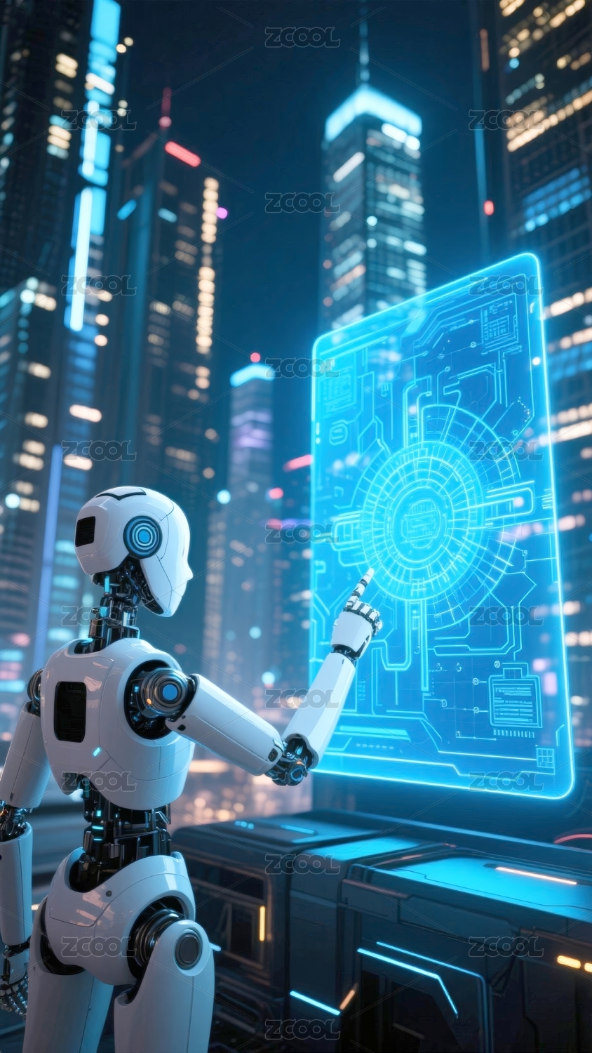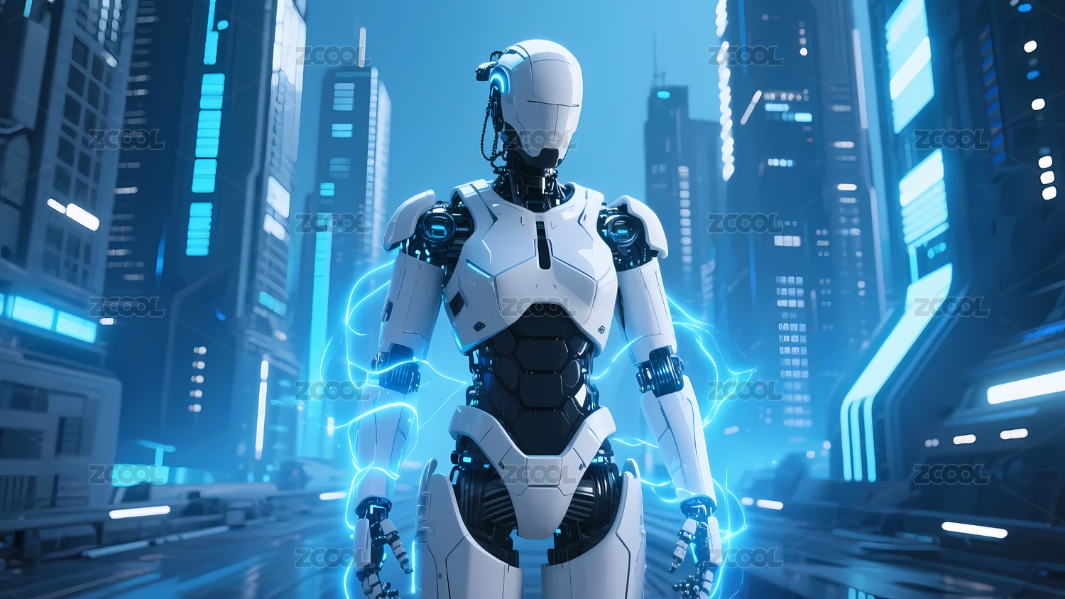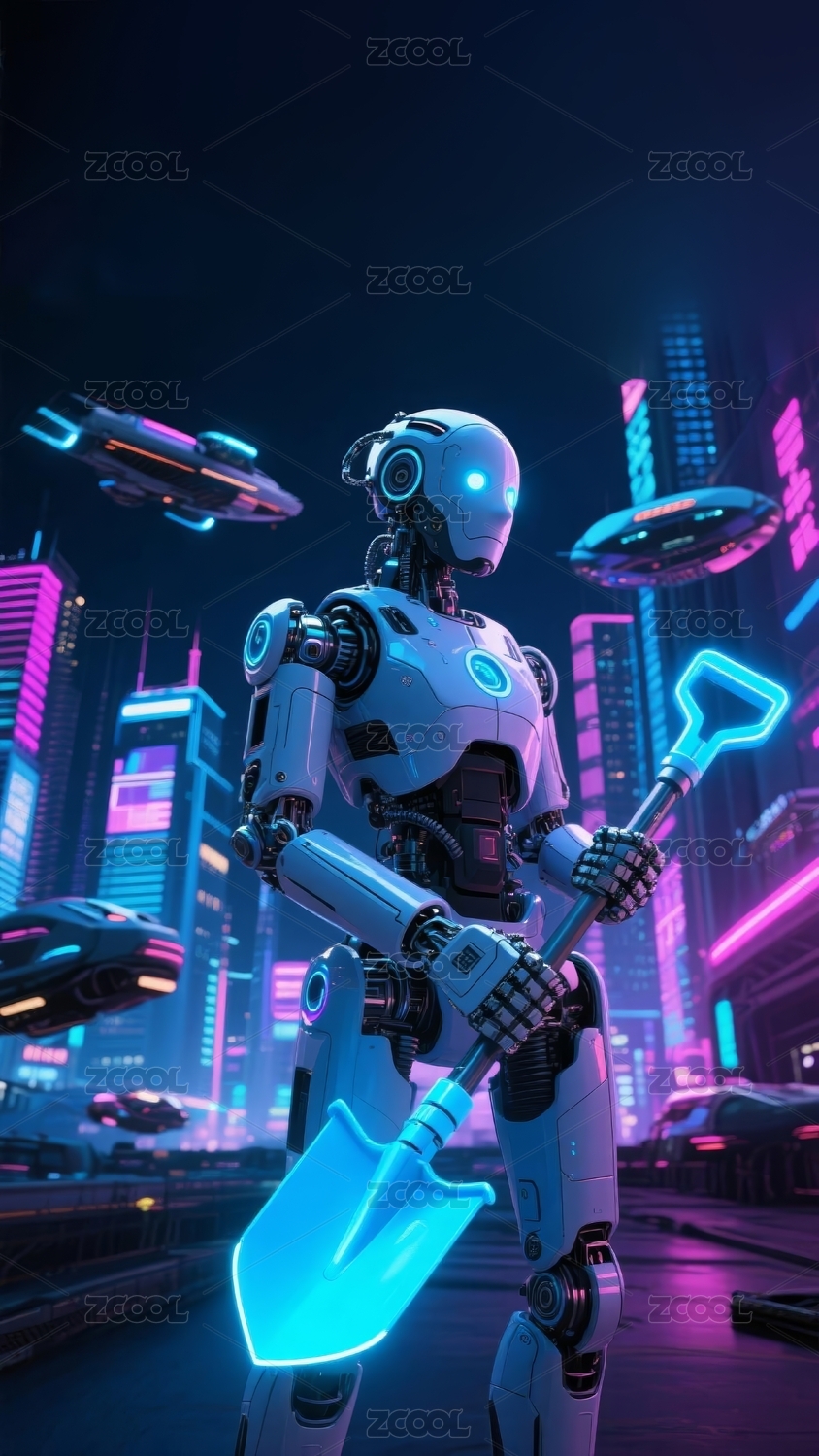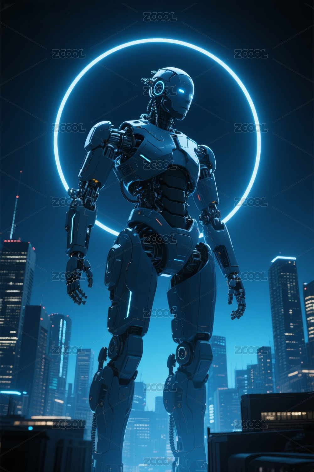 未来, 城市, 机器人, 科技, 灯光, 高楼, 夜景, 科幻, 机械, 智能
