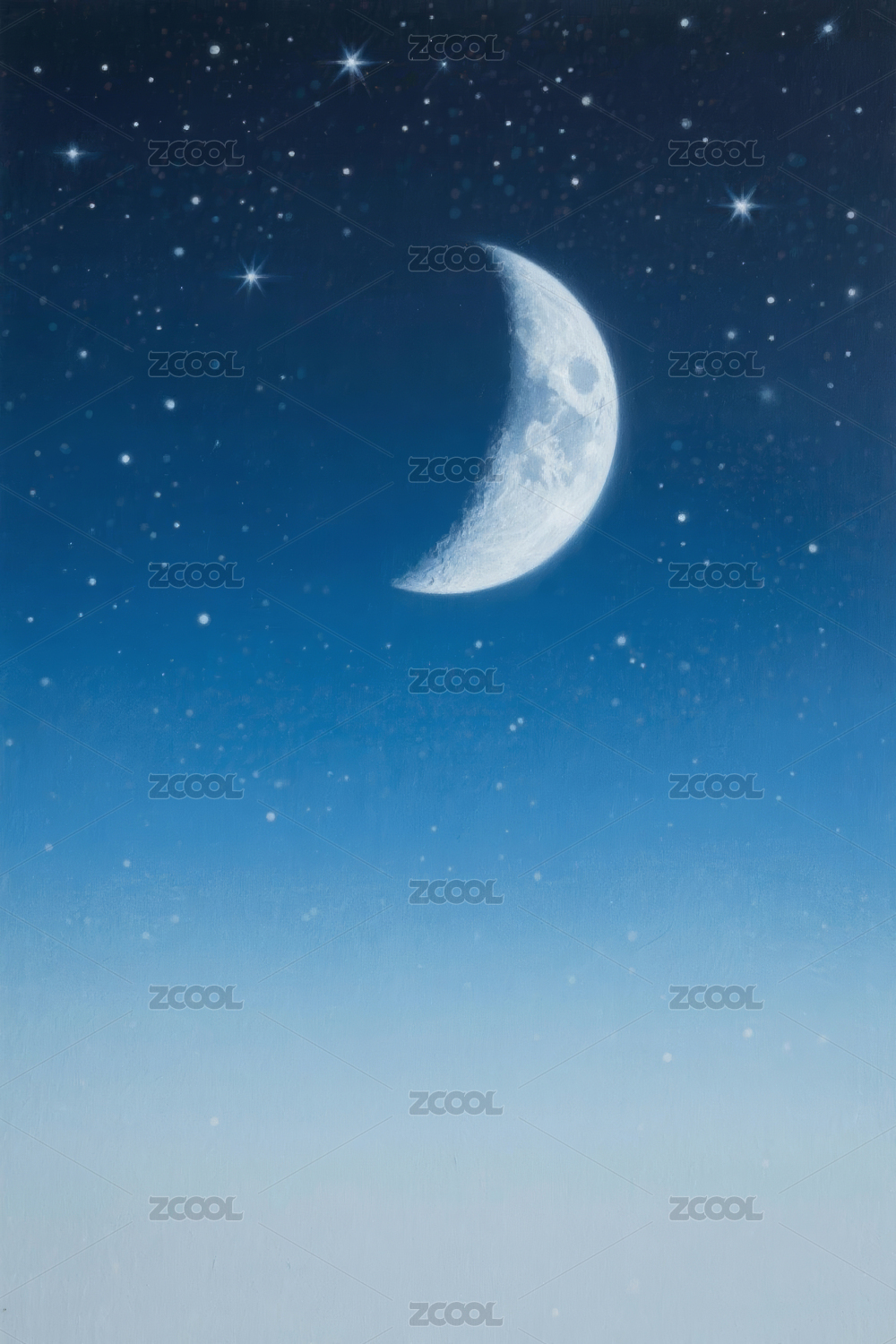 深邃星空下的月牙弯月