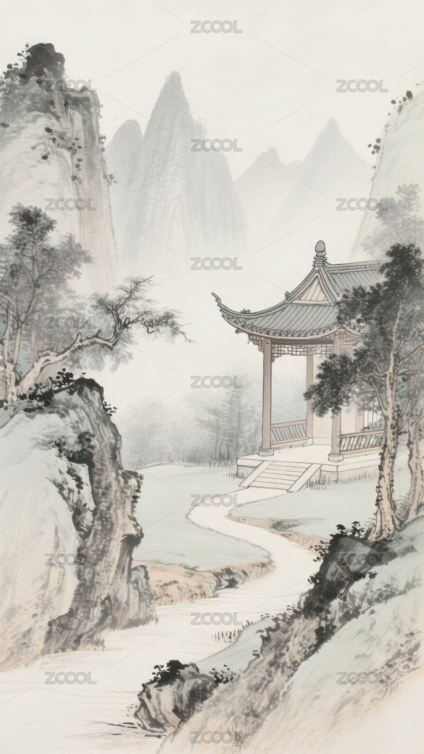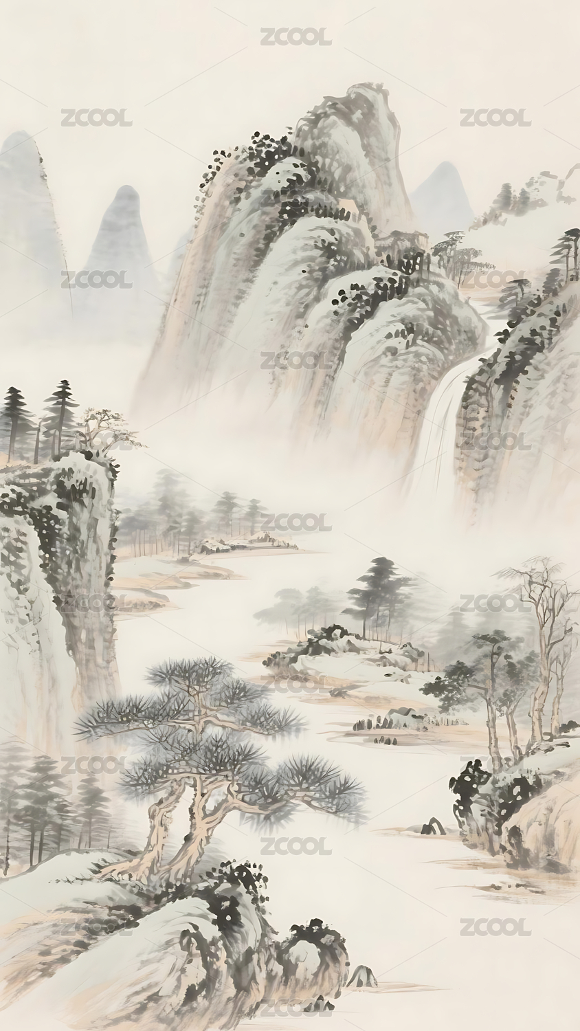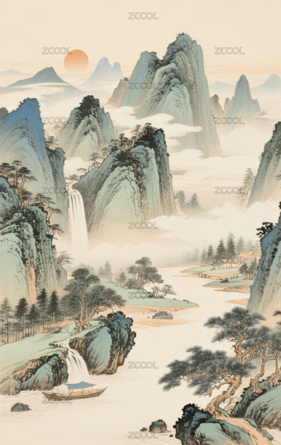 山峰, 自然, 风景,山水, 云雾, 河流, 水墨, 远山, 近水, 艺术