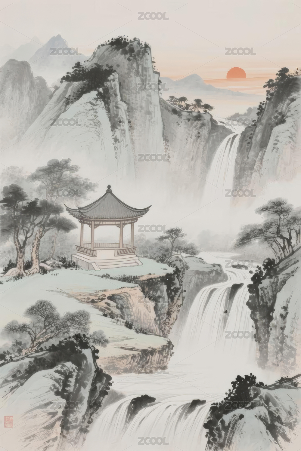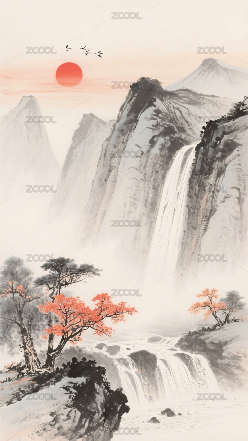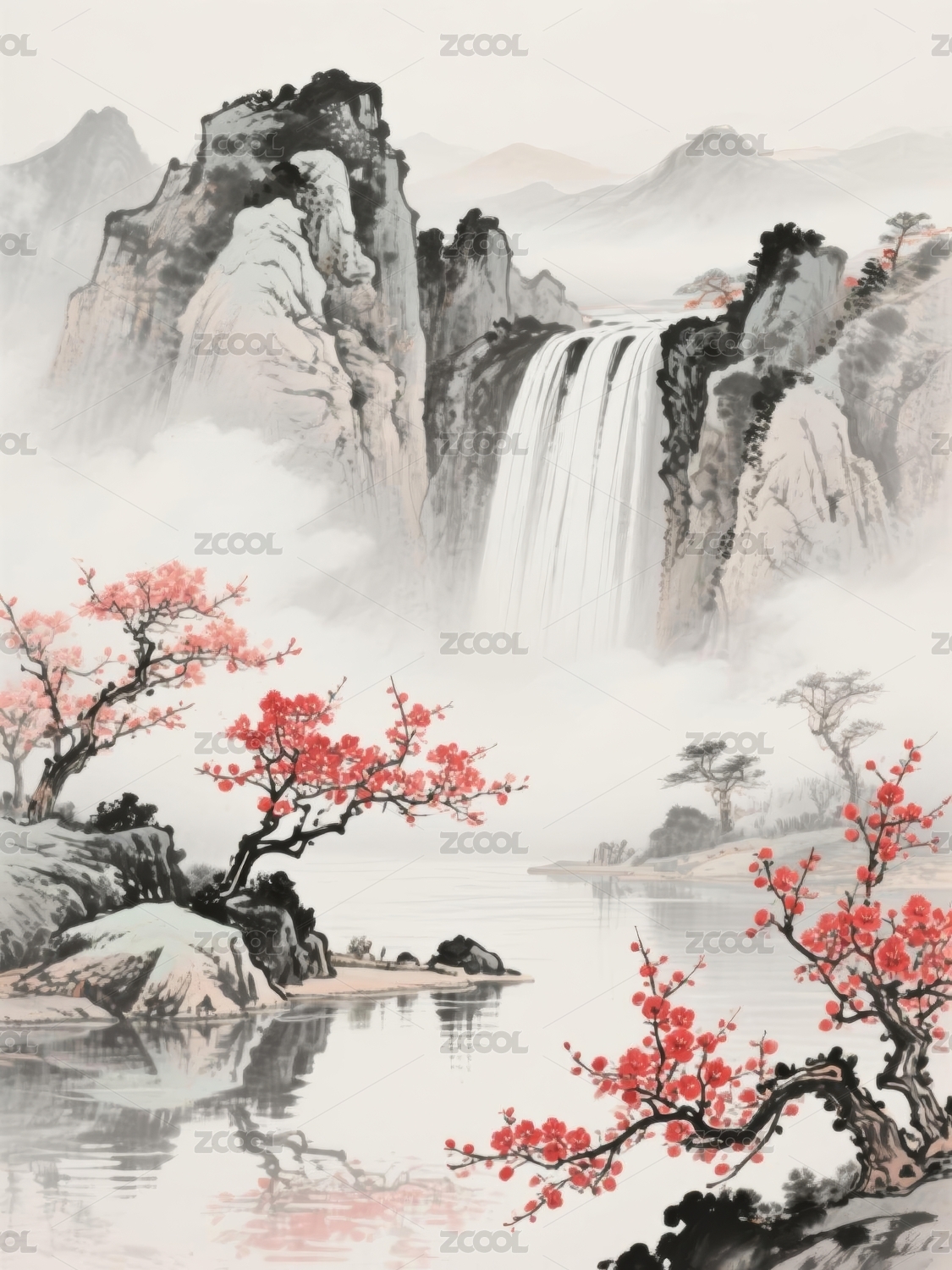 山峰, 自然, 风景,山水, 云雾, 河流, 水墨, 远山, 近水, 艺术