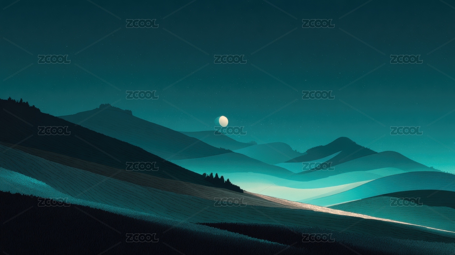 月夜群山远景