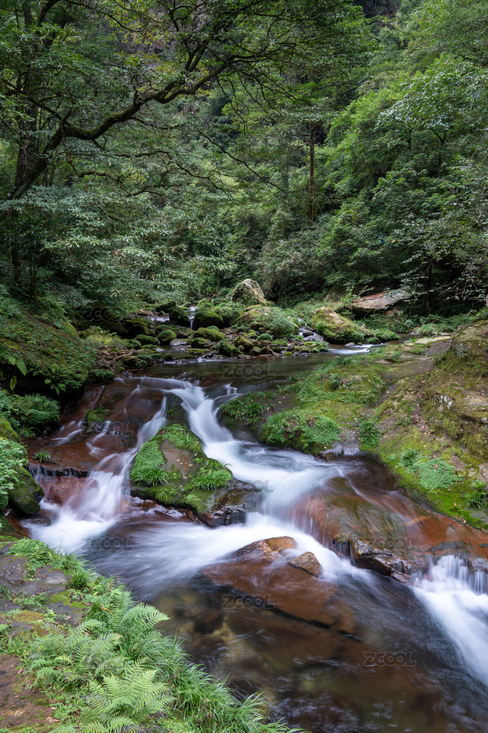 慢门拍摄的重庆五A级风景区黑山谷的溪流