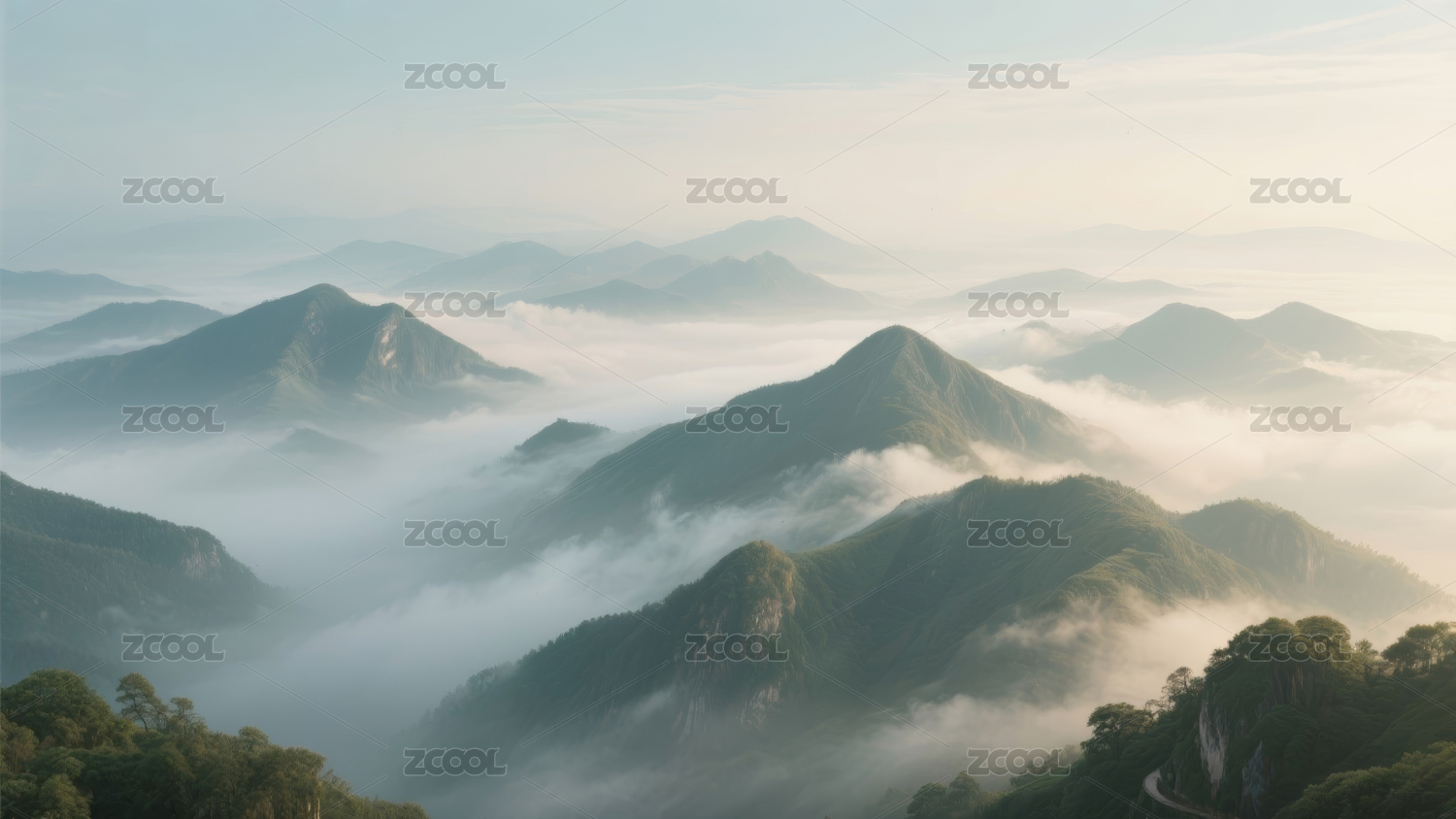 自然, 道路, 美丽, 风景, 幽静, 宁静, 远山, 薄雾, 清晨, 雾气