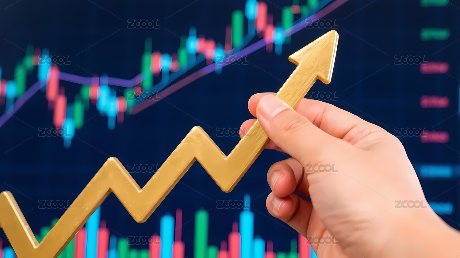 金箭头手握图表