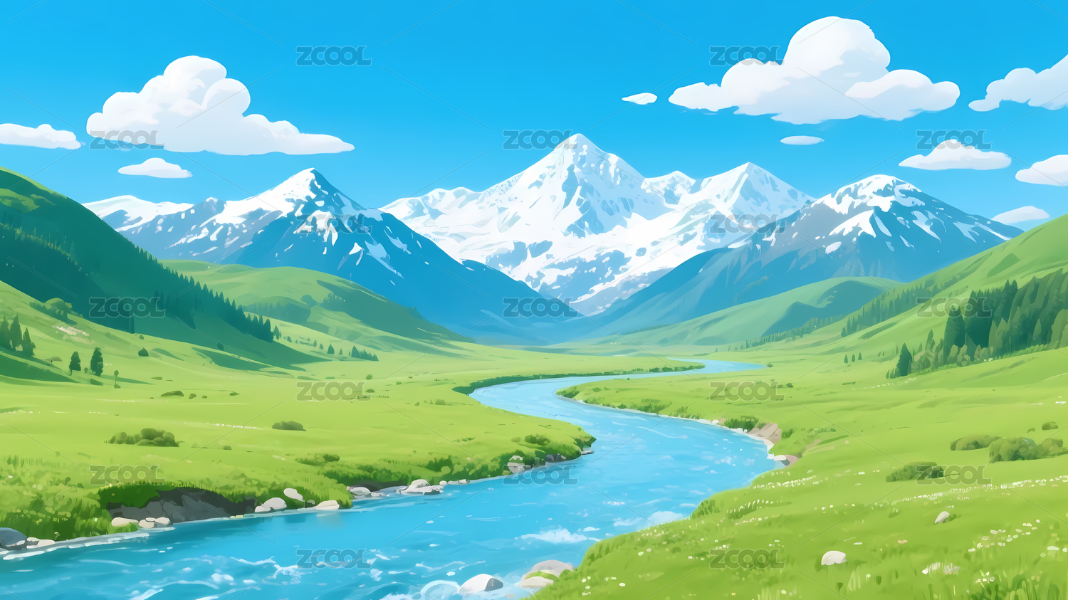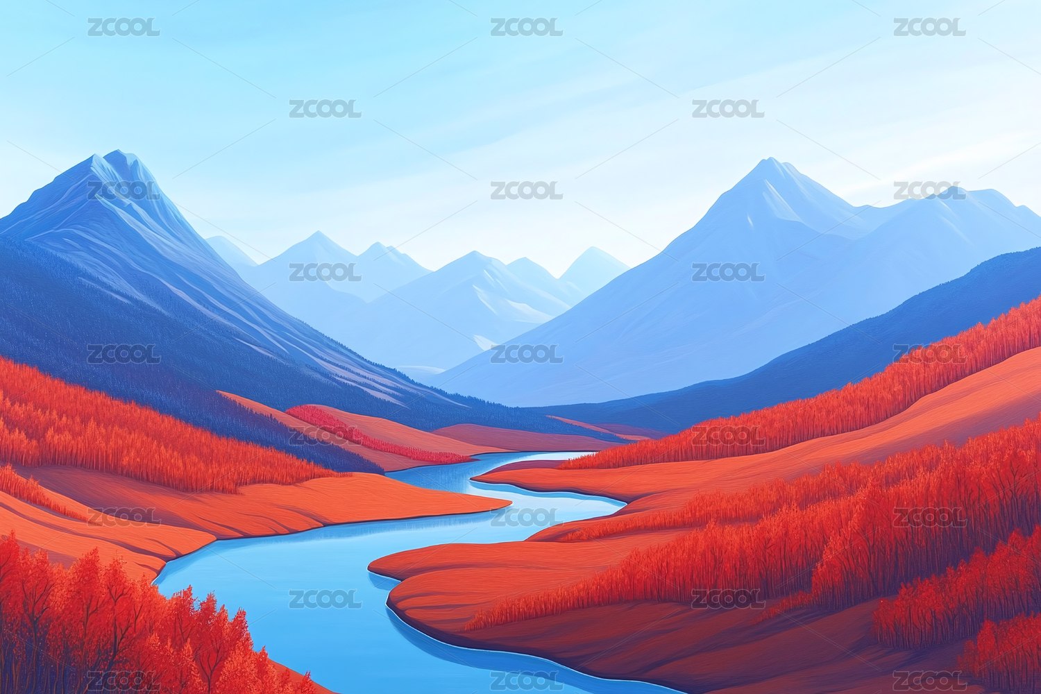 山水风景插画