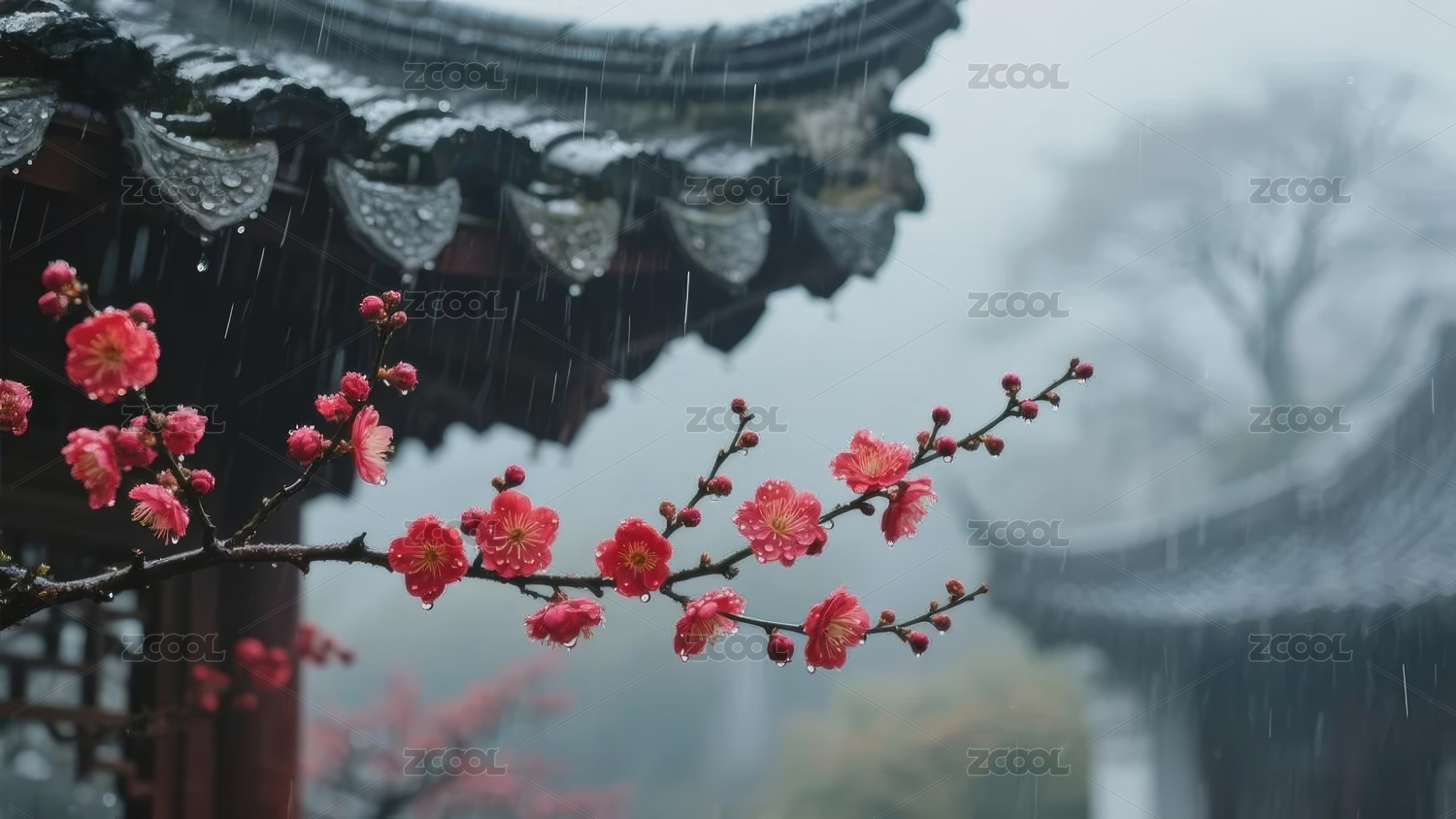 古屋檐下红梅
