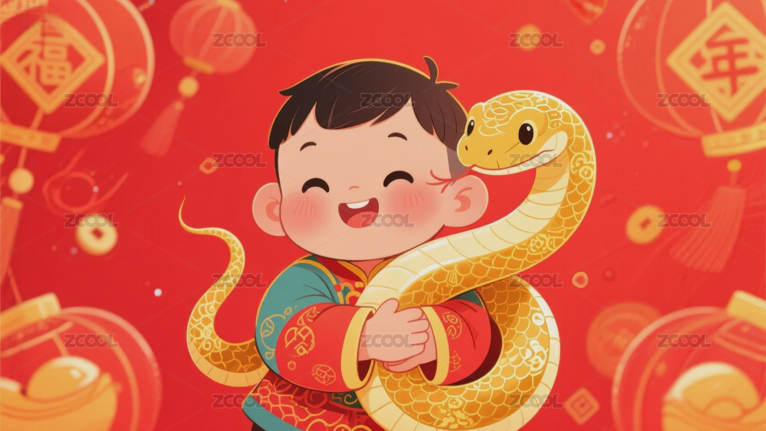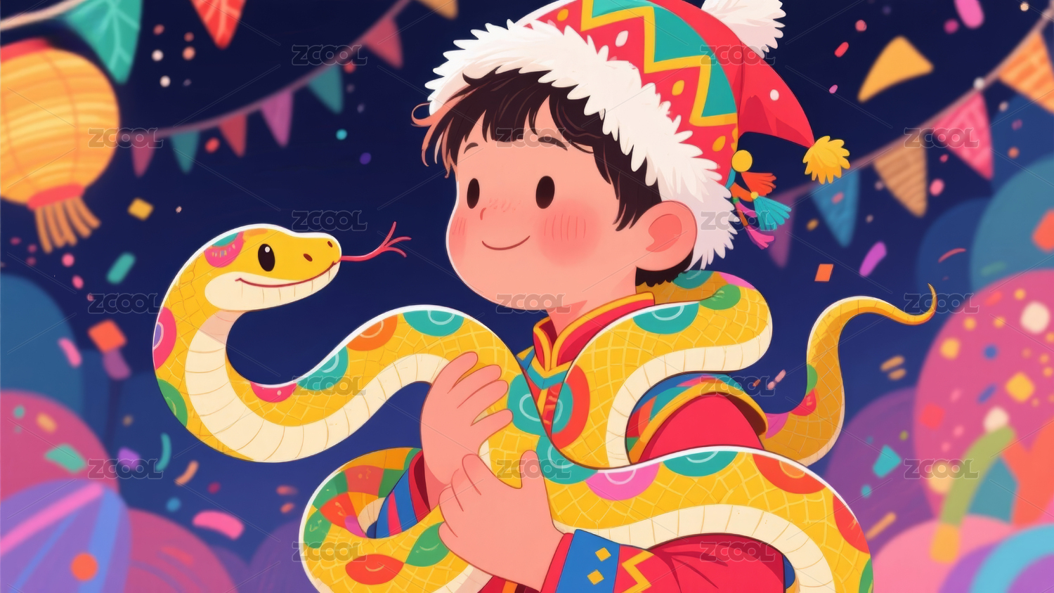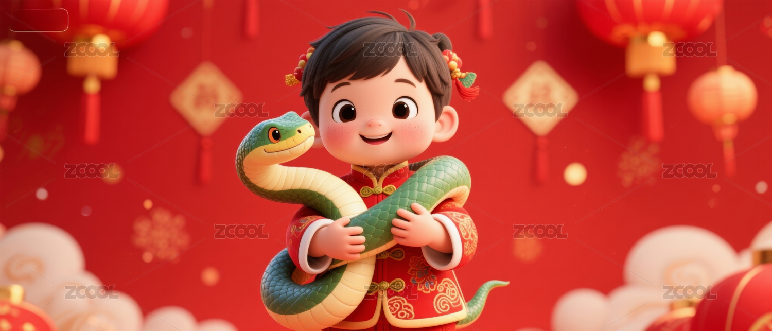 男孩与蛇年吉祥物