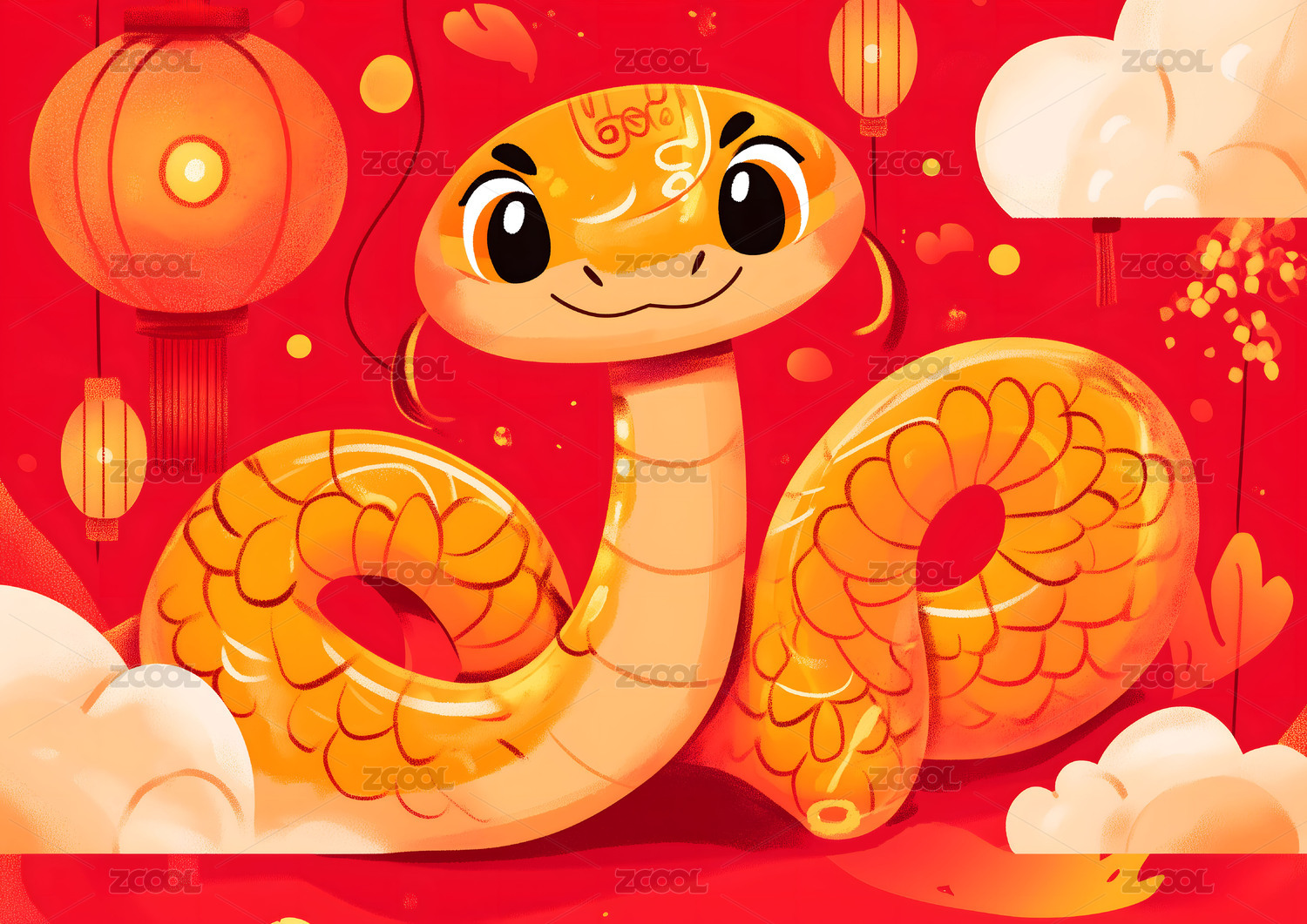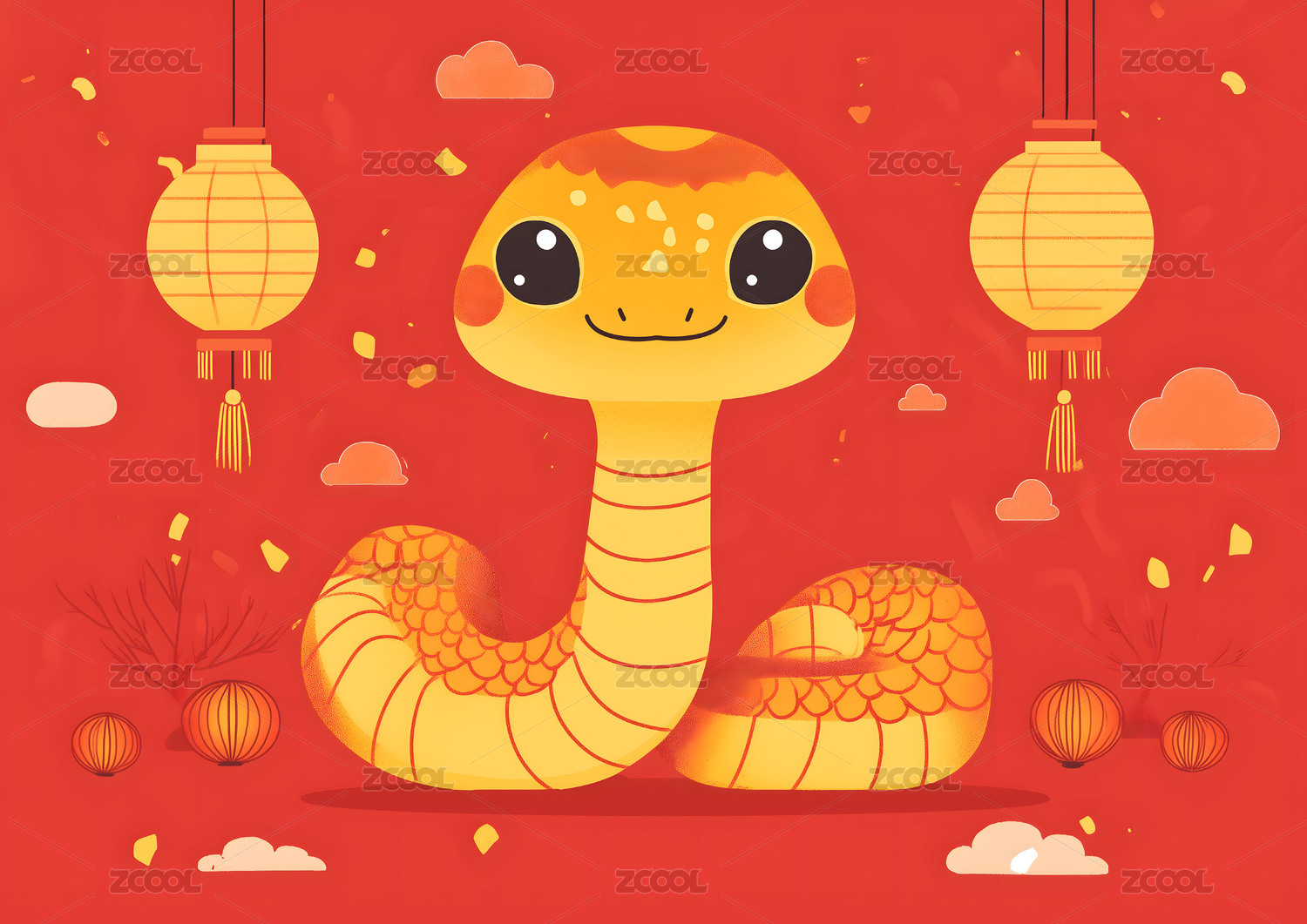 蛇年春节主题插画