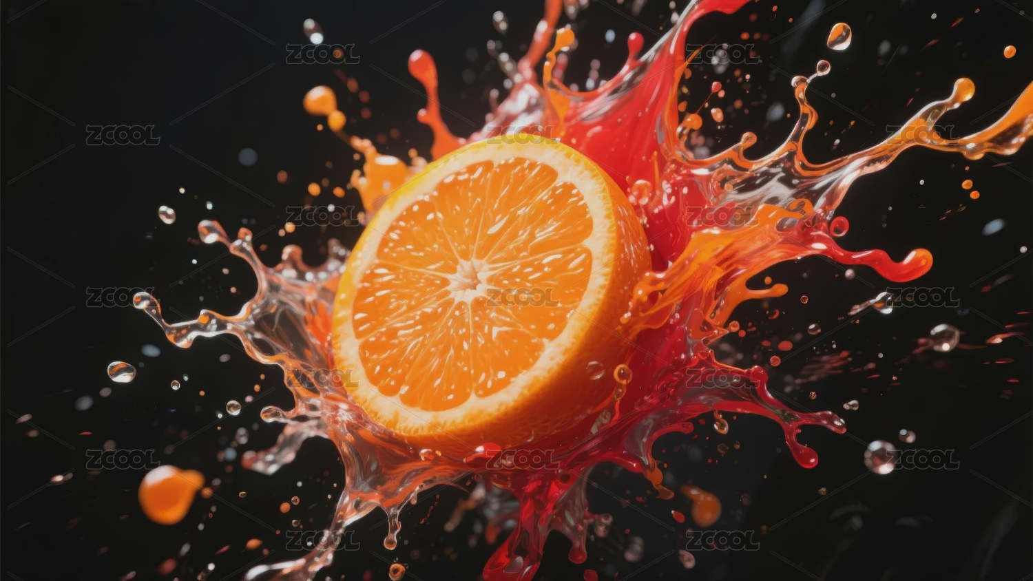 写实立体溅起水花的新鲜柠檬柚子汁水四溢
