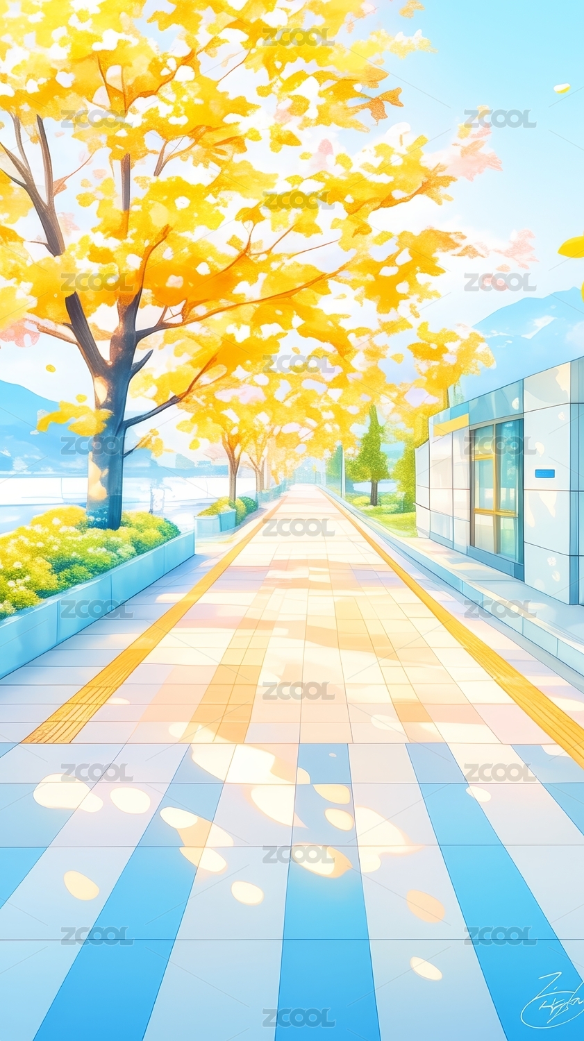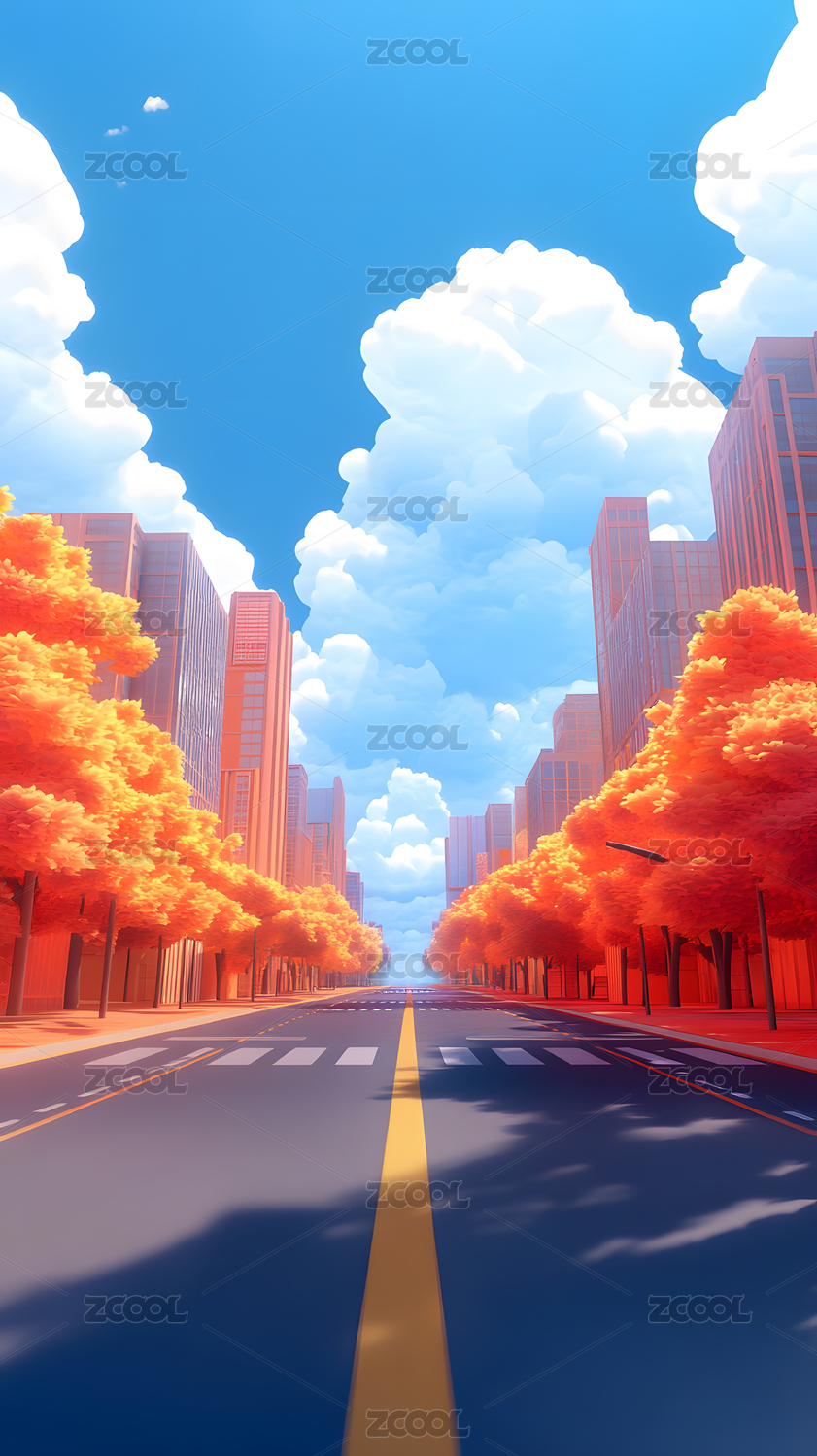 秋叶多彩风城市街道场景