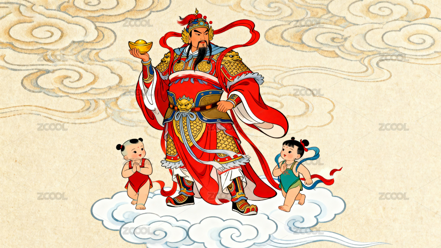 人物,神话, 红色, 服饰, 头饰, 面具, 火焰, 背景, 艺术, 绘画