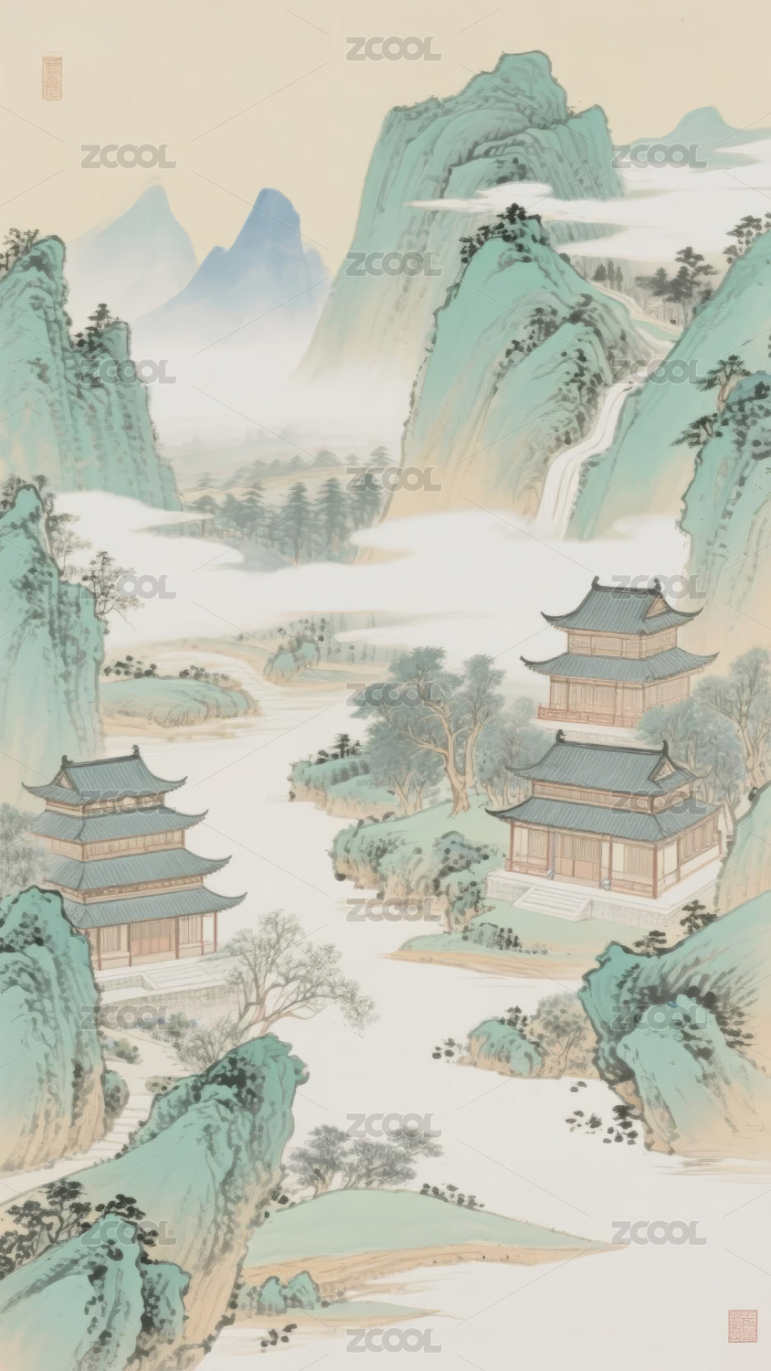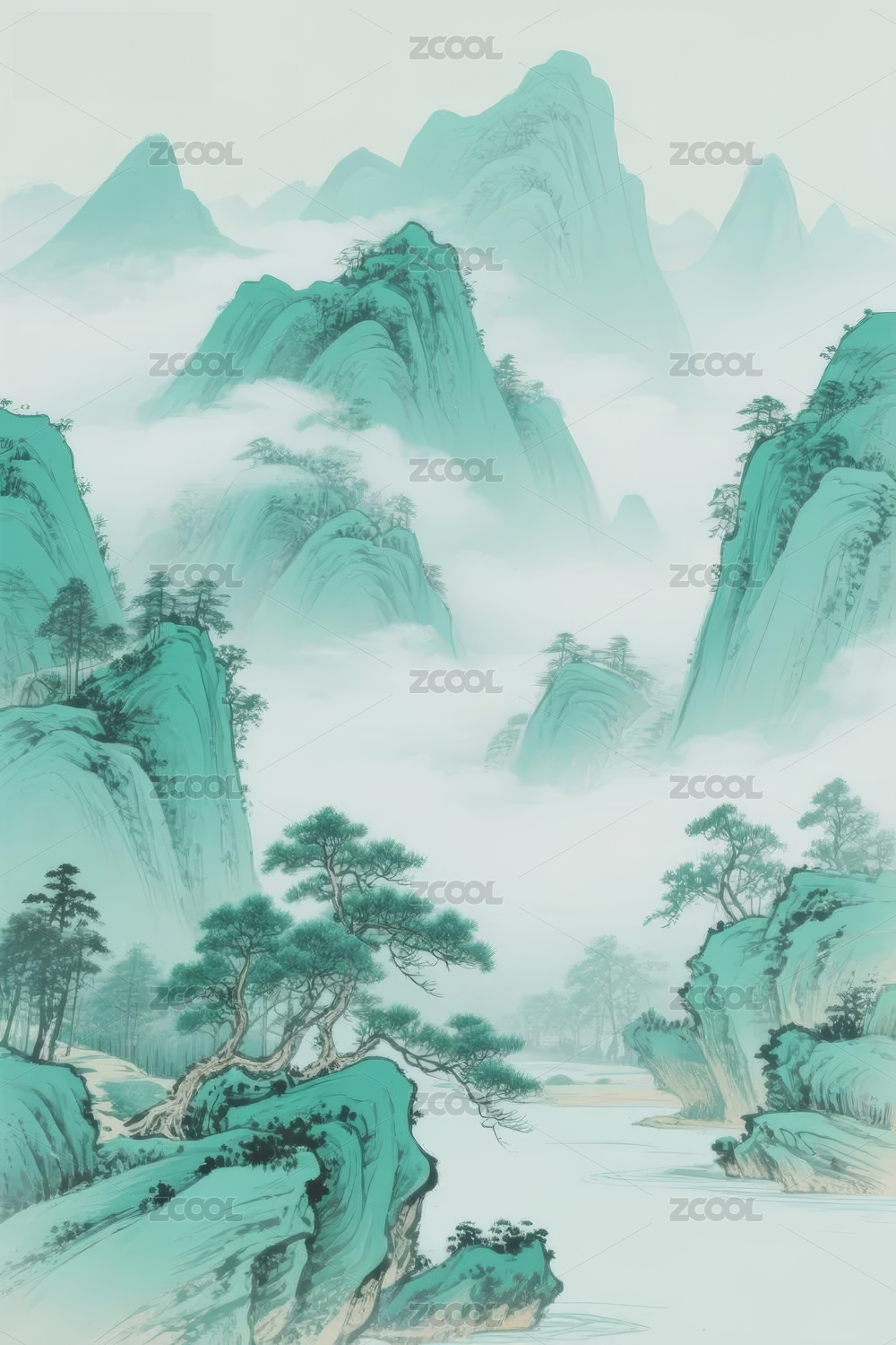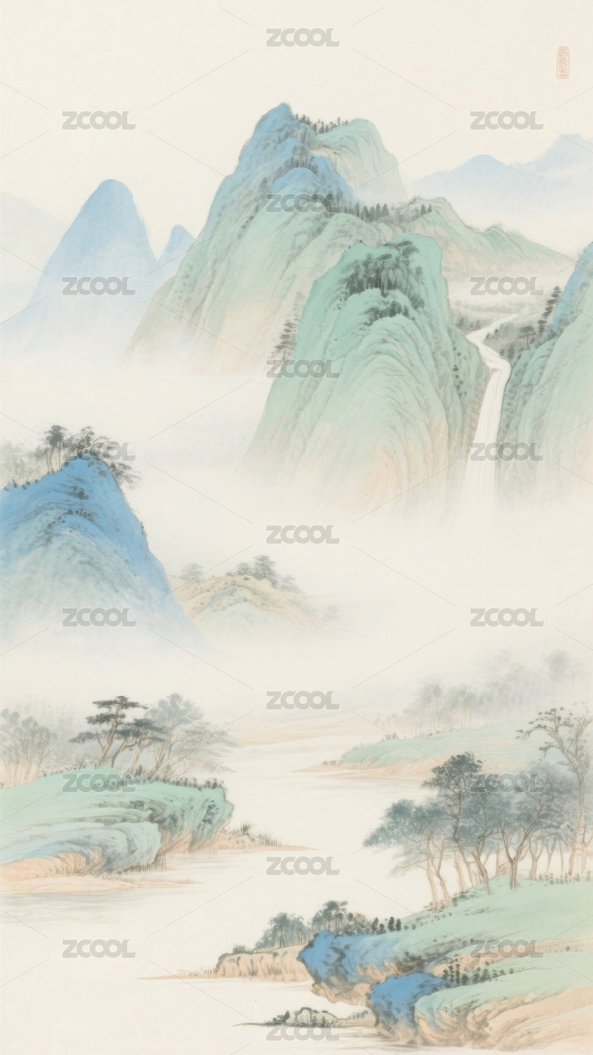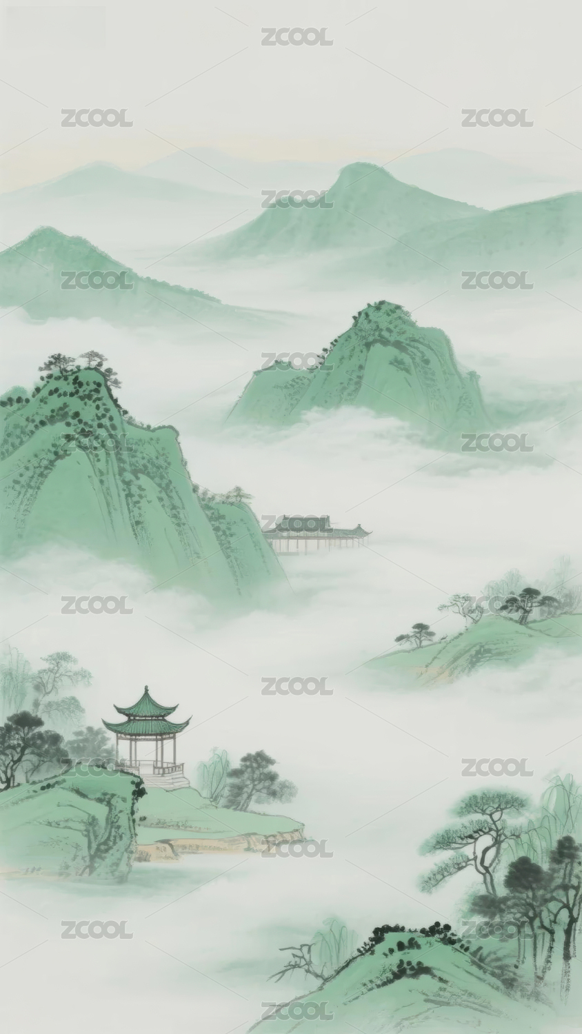 山峦, 桥梁, 河流, 艺术, 自然, 美丽, 意境, 云雾, 风景, 传统