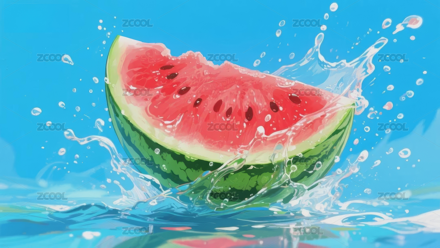 飞溅水花红绿西瓜