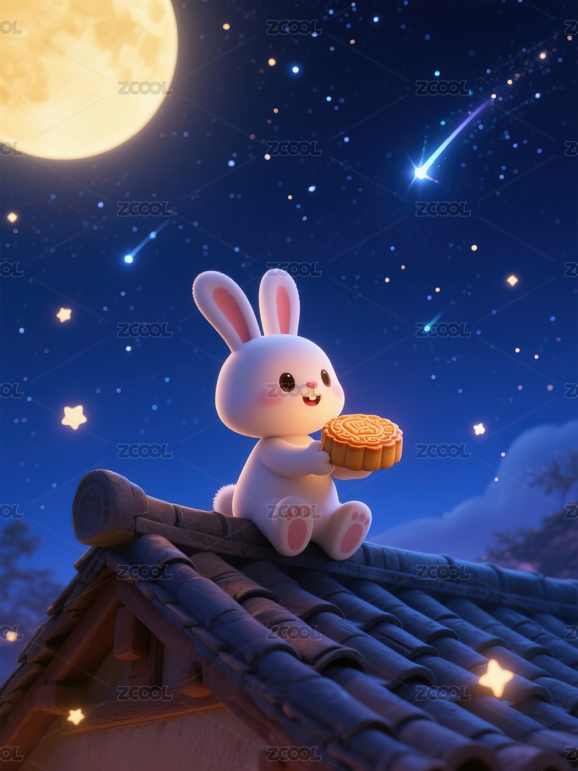 中秋节可爱国潮风玉兔传统节日赏月习俗插画